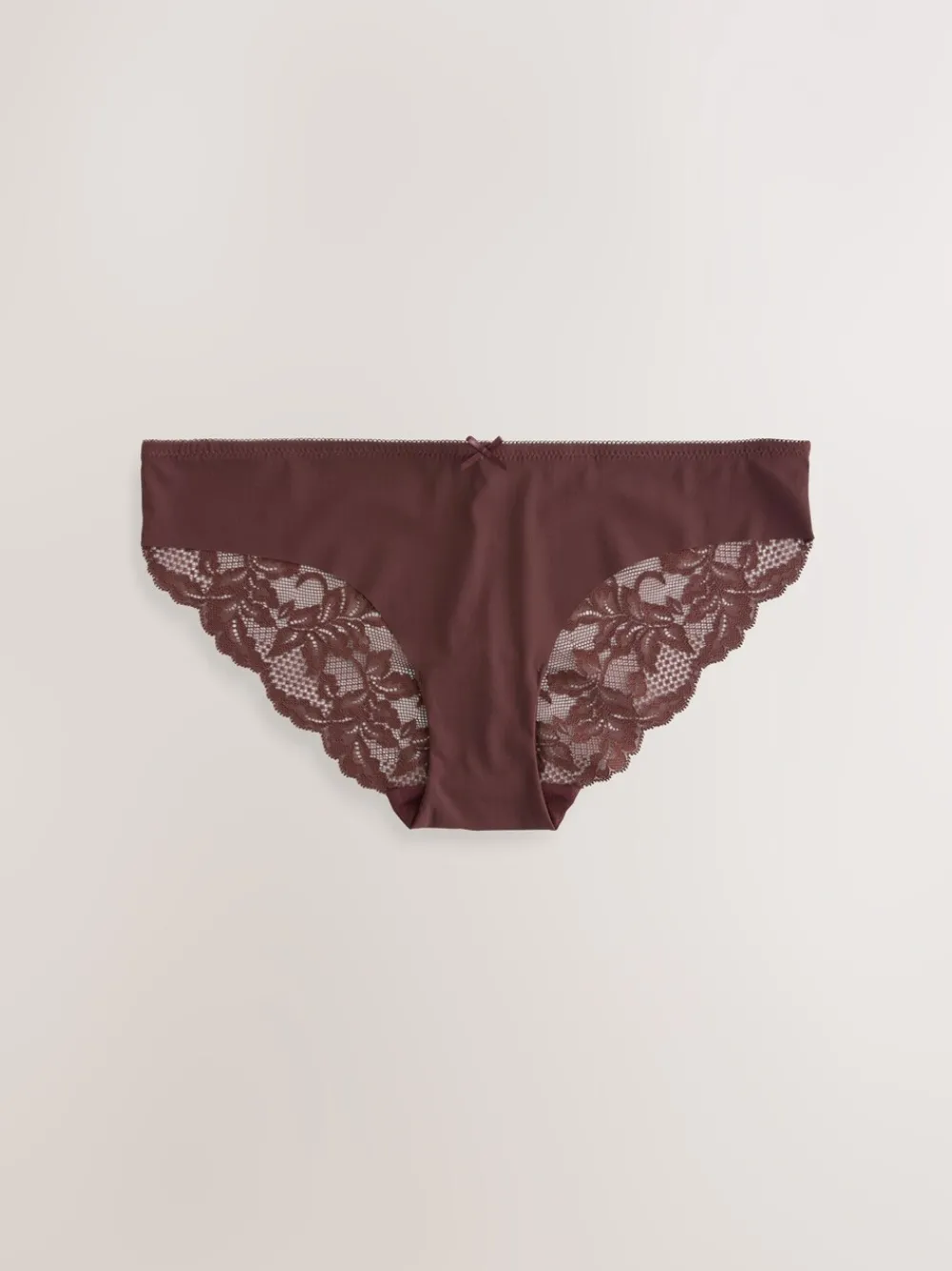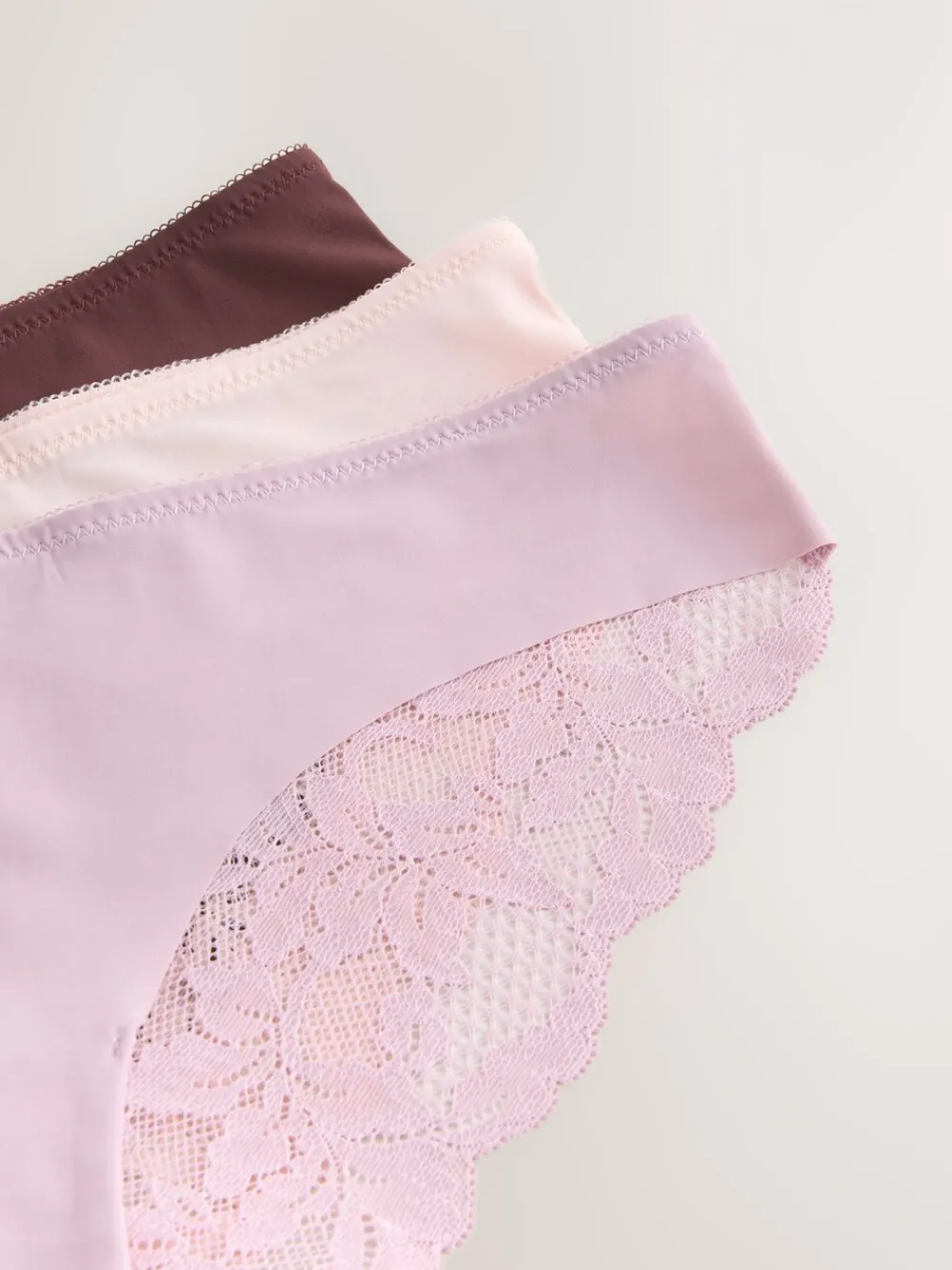 Chocoladebruin / Huidskleur / Mauve / Roze – 3 Niet-aftekenende slips met kanten achterkant*Next Online