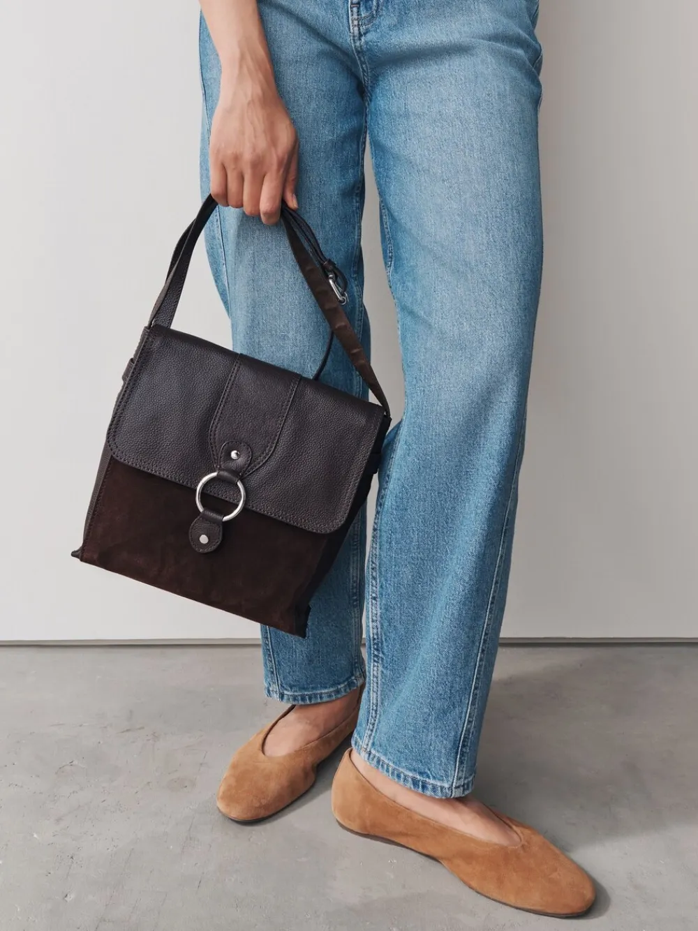 Chocoladebruin – Leren messenger-tas met vak*Next Sale