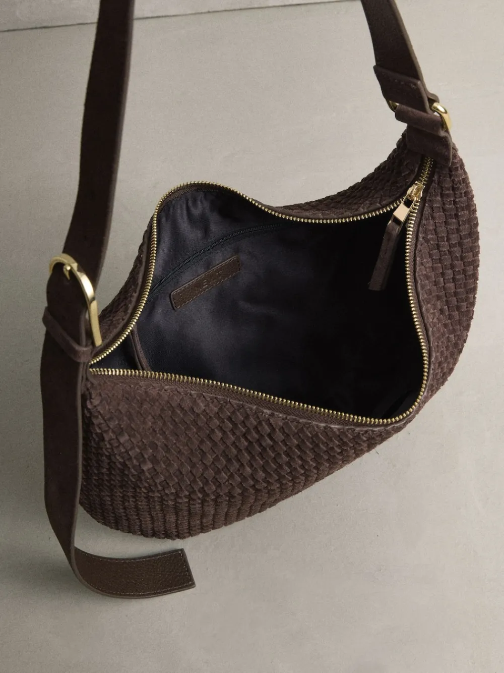 Chocoladebruin – N. Premium Suede Sling Weave Schoudertas*Next Hot