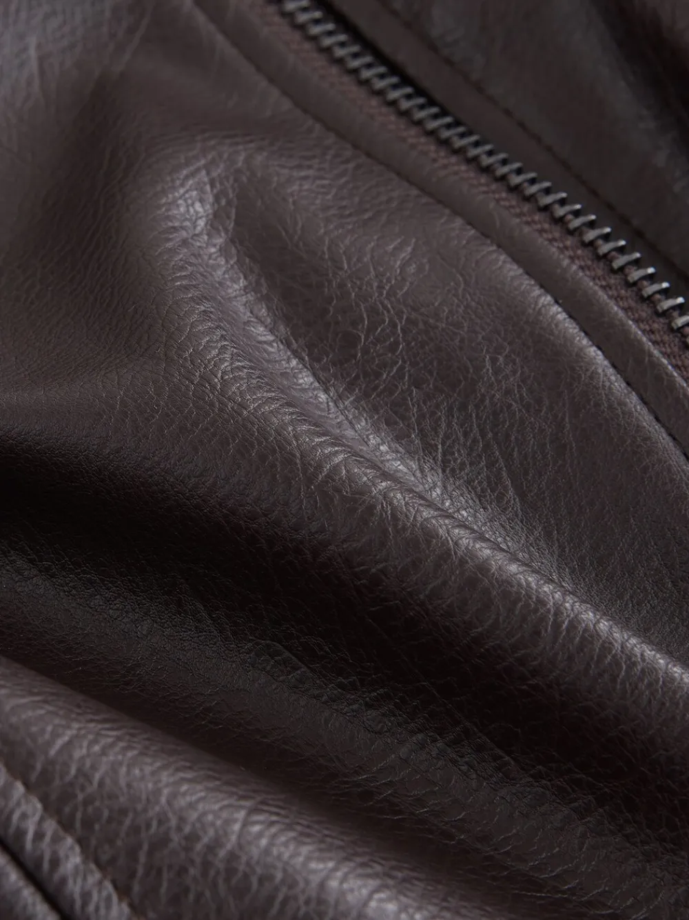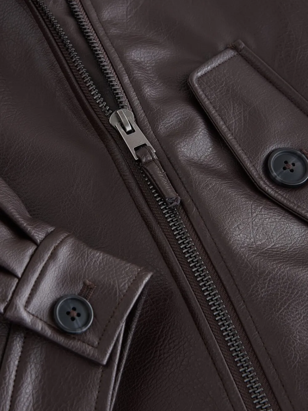 Elevate the classic bomber style with this statement chocolate brown jacket. Crafted from faux leather, it features a luxurious faux fur collar and smart button detailing on the cuffs and pockets. Perfect for fashionable cold-weather layering. Faux leather Faux fur collar Full zip-up fastening Button detailing on cuffs and pockets Standaardmaat van het midden van de nek tot de zoom 26″ / 66 cm. Buitenkant 100% gerecycled polyester met PU-coating. Imitatiebont 100% polyester. Voering 100% gerecycled polyester.