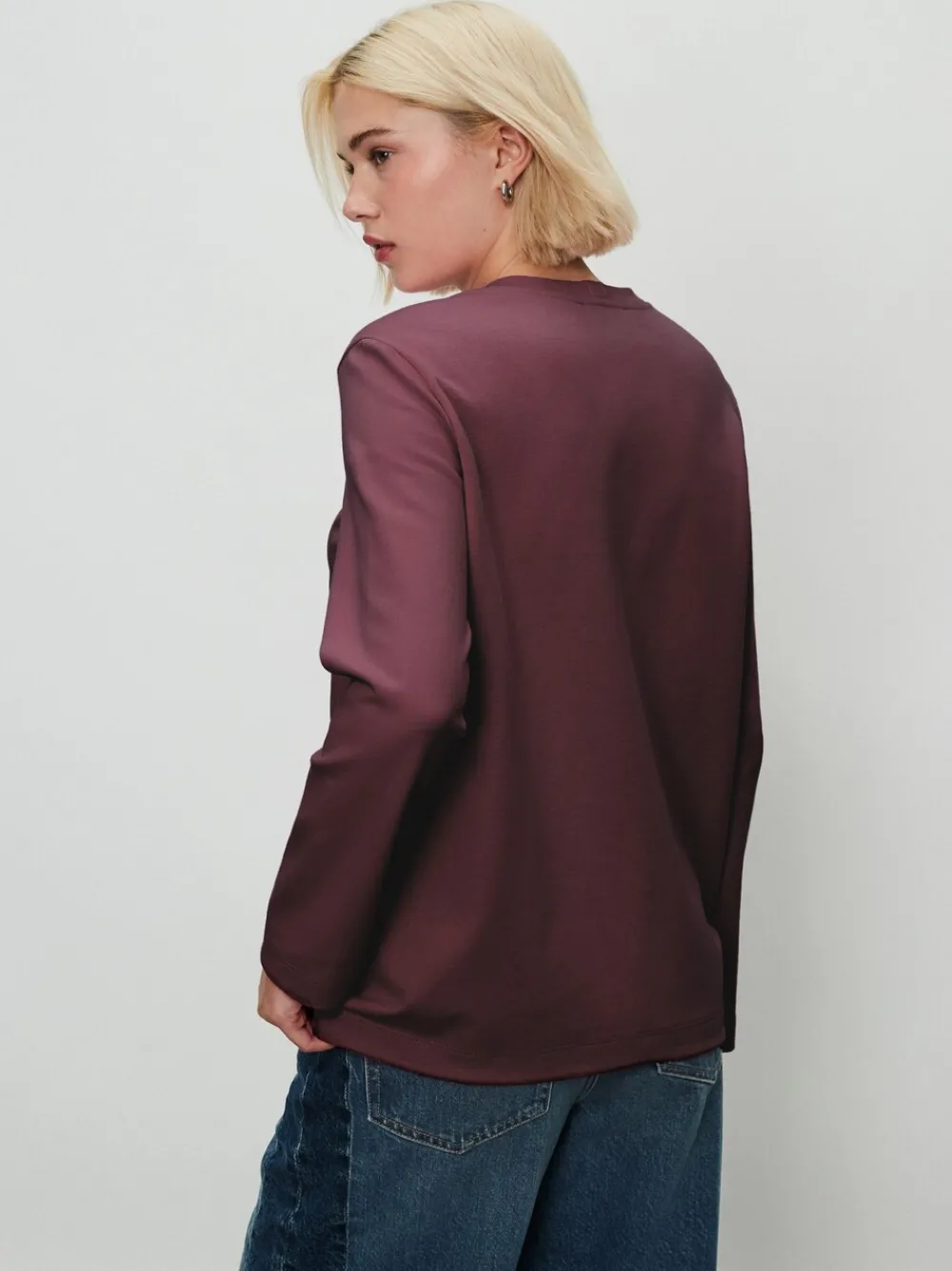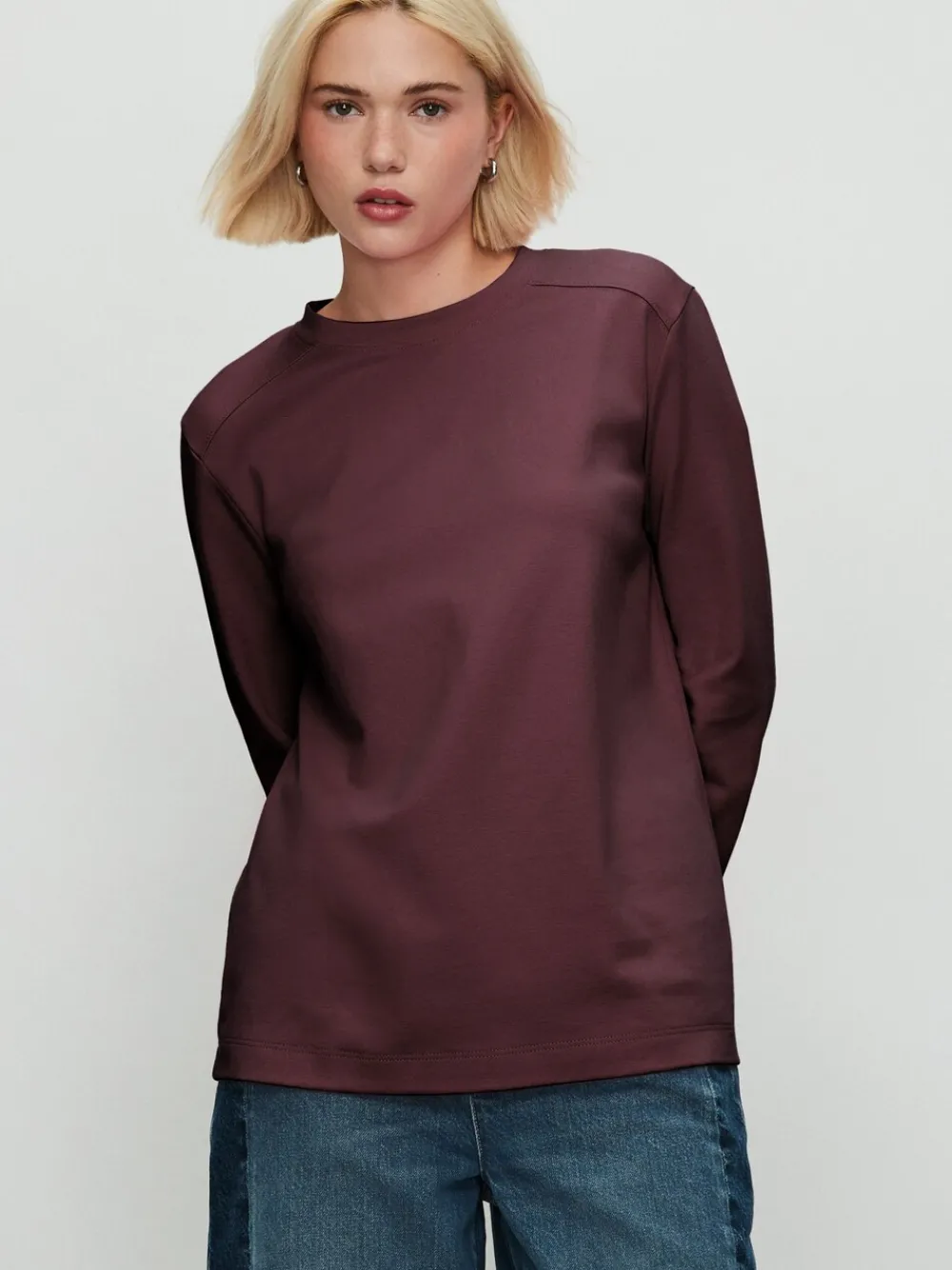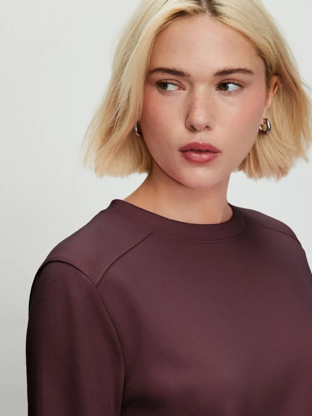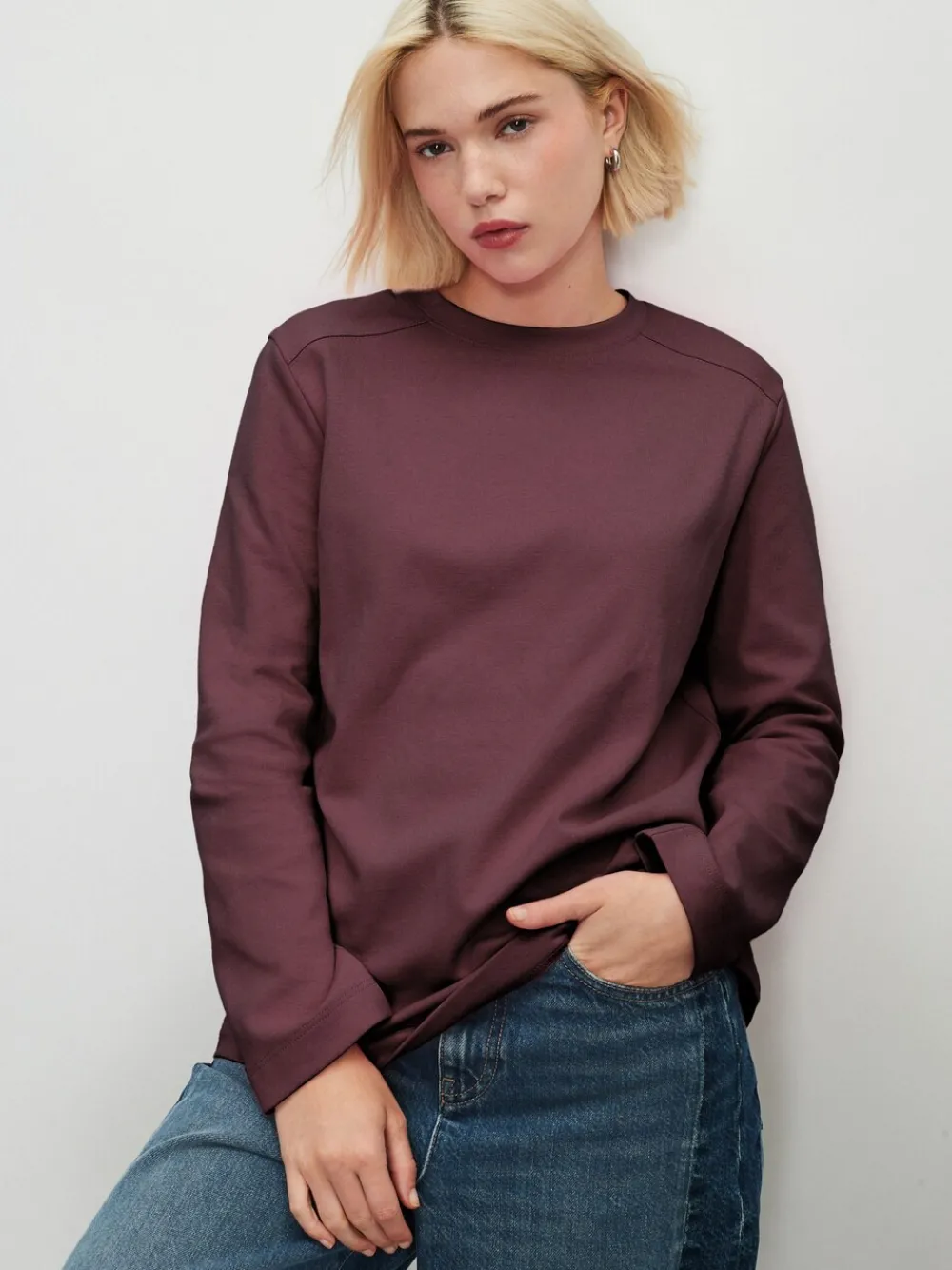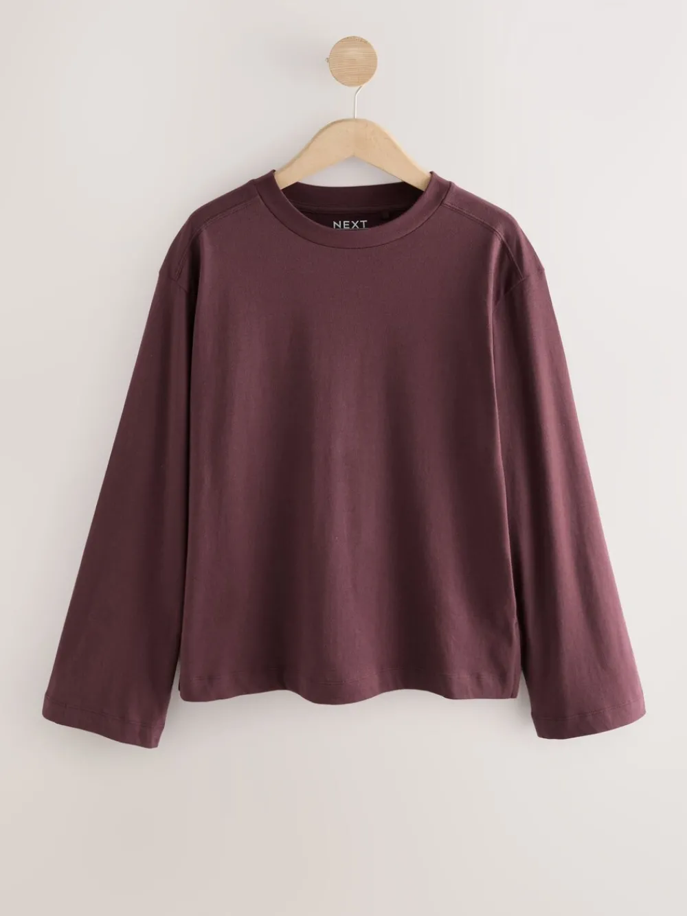 Wrap up in comfort with this essential brown long-sleeve top. Made from 100% cotton, the fabric has a beautiful peached finish for an incredibly soft feel. The classic crew neck and simple silhouette make it a perfect everyday staple. 100% cotton Crew neck Long sleeves Peached finish on the fabric Machinewasbaar. Hoofdzakelijk 100% katoen. Hals 95% katoen, 5% elastaan.