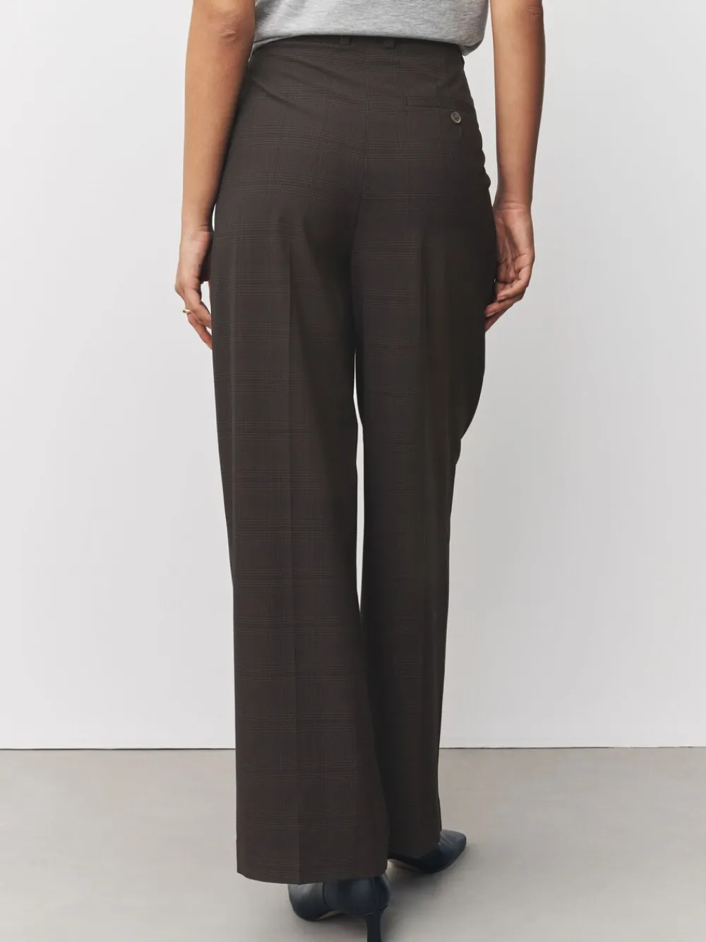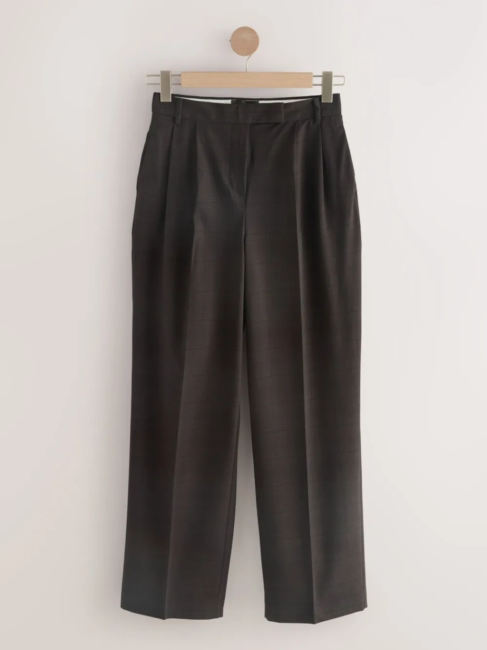 Achieve a sophisticated look with these chocolate brown-check trousers. The double-front pleats and straight leg create a sharp silhouette, while the subtle check print adds a classic touch. Featuring an elasticated back waist and concealed fastening, they offer comfortable all-day tailoring. Regular fit Check print Double-front pleat Straight leg Elasticated back waist Button and zip fly fastening Belt loops Short voor binnenbeenlengte 27″ / 69cm. Regular voor binnenbeenlengte 29″ / 74cm. Lang genoeg voor binnenbeenlengte 31″ / 79cm. XL Tall voor binnenbeenlengte 33″ / 84cm. Machinewasbaar. 68% gerecycled polyester, 15% viscose, 12% wol, 5% elastaan. Artikelen met het curve-logo zijn verkrijgbaar in de maten 18 en groter. Onze tall collectie is ontworpen om te passen bij vrouwen van 5’10” en langer. Dit is verhoudingsgewijs vergroot door het lichaam, de benen en de mouwen om de perfecte pasvorm te bereiken. Verkrijgbaar in maat 8-20.