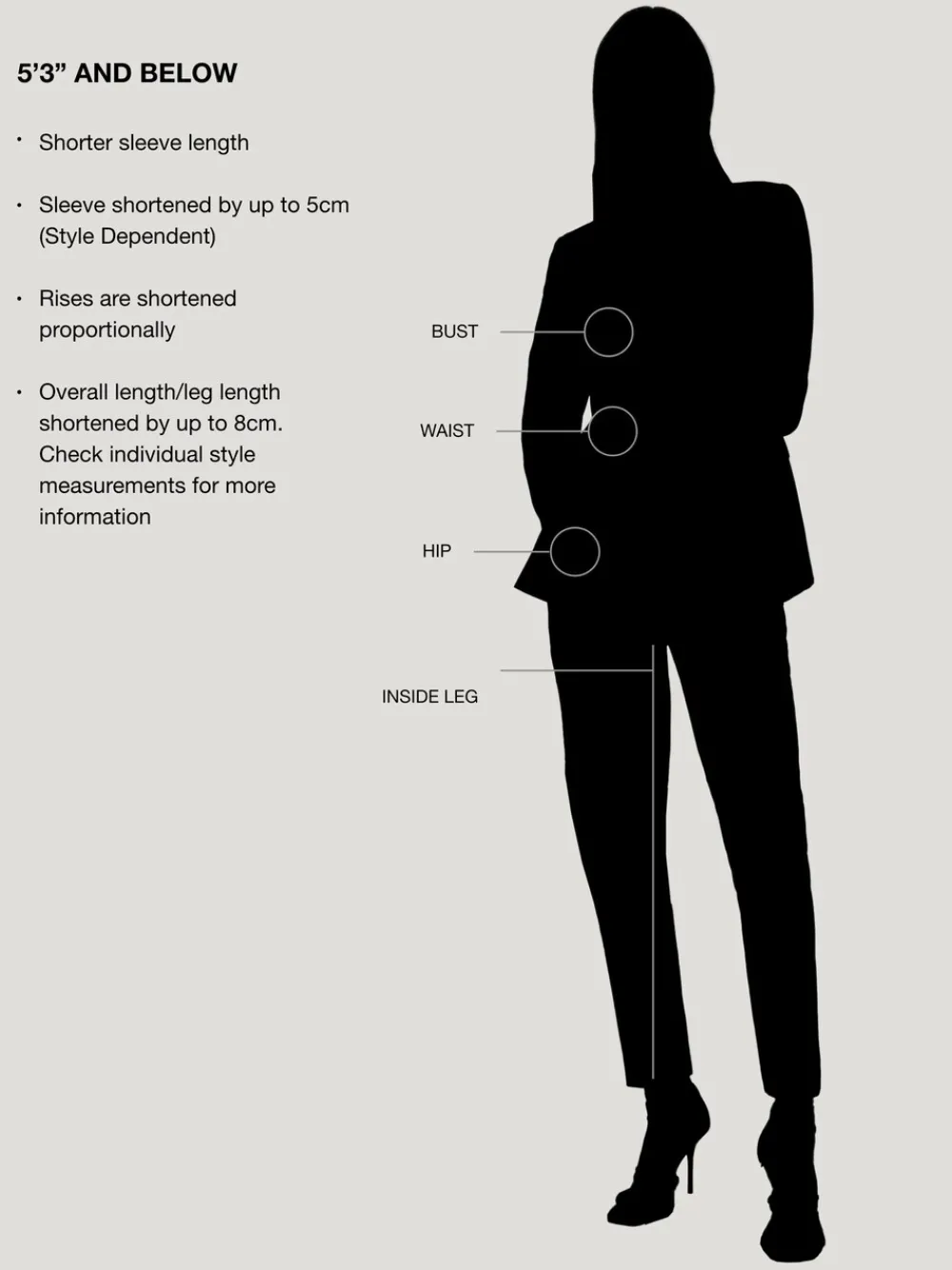 | Size | EU 34 T (UK 24 W), EU 36 T (UK 25 W), EU 40 T (UK 27 W), EU 44 T (UK 29 W), EU 46 T (UK 30 W), EU 50 T (UK 32 W), EU 54 (UK 26), EU 56 (UK 28) |