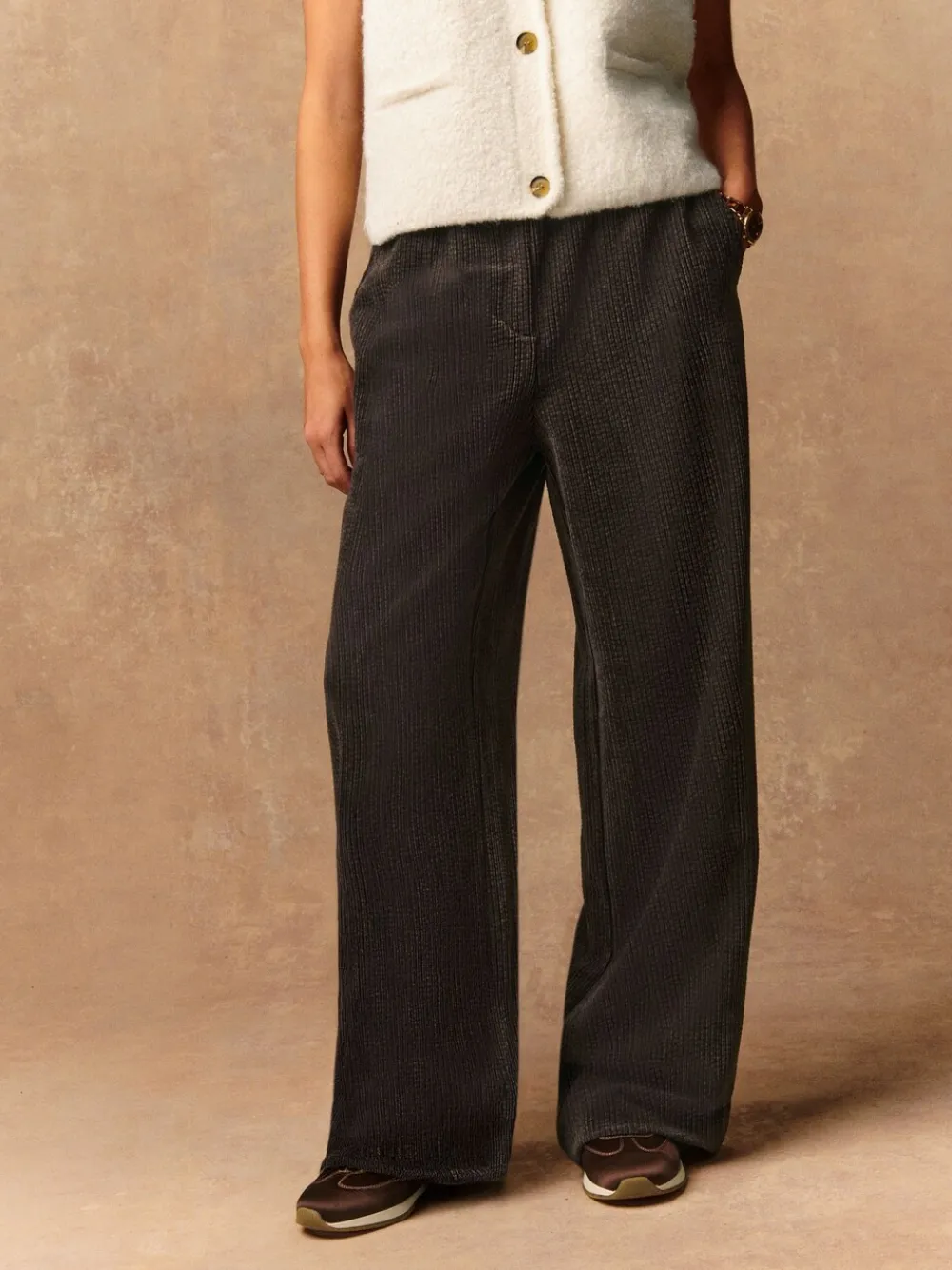 Blijf deze herfst comfortabel en chic in deze chocoladebruine corduroy broeken met wijde pijpen. De zachte corduroy broeken stof en het zwaardere gewicht zijn perfect voor kouder weer, terwijl de elastische tailleband zorgt voor een comfortabele en ontspannen pasvorm. Een onmisbaar kledingstuk voor stijlvolle, dagelijkse kledij. Regular fit Pluche koordstof Elastische taille Aantrekmodel Zijzakken met steekzakken Wijde pijpen Short voor binnenbeenlengte 27″ / 69cm. Regular voor binnenbeenlengte 29″ / 74cm. Lang genoeg voor binnenbeenlengte 31″ / 79cm. XL Tall voor binnenbeenlengte 33″ / 84cm. Machinewasbaar. 87% gerecycled polyester, 10% nylon, 3% elastaan. Artikelen met het curve-logo zijn verkrijgbaar in de maten 18 en groter. Onze tall collectie is ontworpen om te passen bij vrouwen van 5’10” en langer. Dit is verhoudingsgewijs vergroot door het lichaam, de benen en de mouwen om de perfecte pasvorm te bereiken. Verkrijgbaar in maat 8-20.