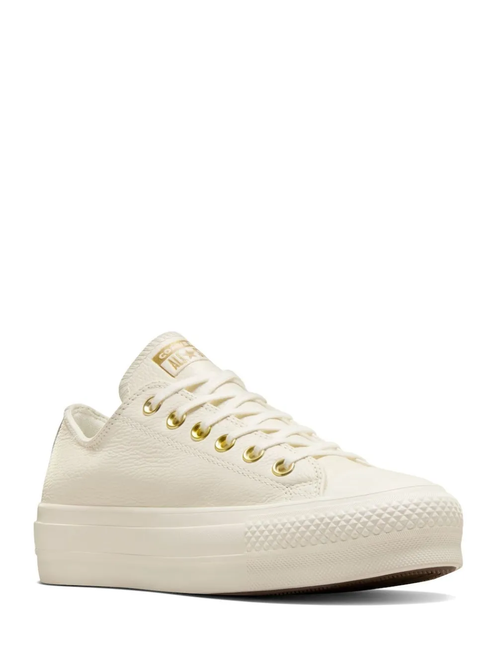 SUBTIELE GLANS Klassieke Chucks, maar dan nóg beter. Luxe leer en een vleugje goud verfijnen moeiteloos al uw favoriete looks. Bovenwerk – textiel. Voering en voetbed – Textiel zool – Andere materialen.