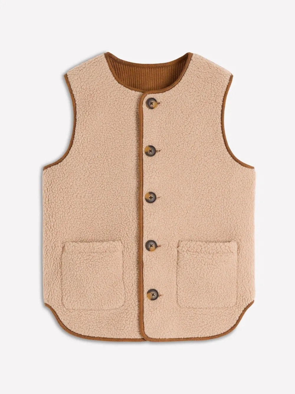 We had you at reversible didn’t we? Snuggly and stylish in equal measure, this plush borg gilet is perfect for those in-betweeny days when neither you or the weather can make up your mind. Machinewasbaar. 91% polyester, 8% nylon, 1% elastaan.