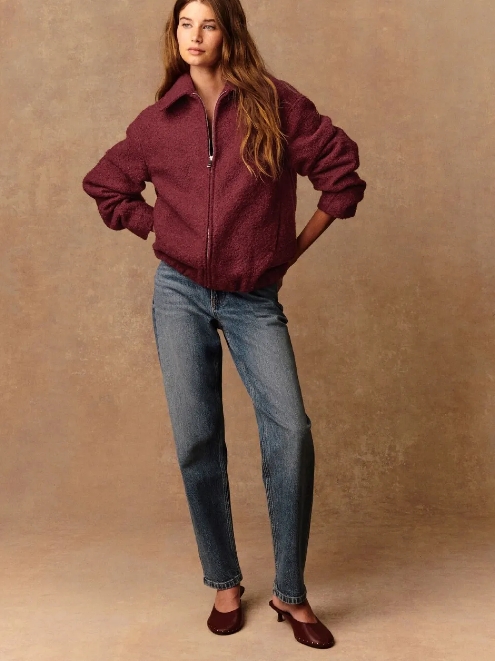 Perfect for transitional weather, this coatigan bomber jacket in red is a stylish and versatile layer. The soft, textured fabric provides a cosy feel, while the zip fastening and on-trend bubble hem create a modern silhouette. It’s an ideal piece for cool-girl styling on any occasion. Bubble hem Zip fastening Standaard van het midden van de nek tot de zoom 23.5″ / 60 cm. Machinewasbaar. Hoofdbestanddeel 100% gerecycled polyester. Voering 100% gerecycled polyester.
