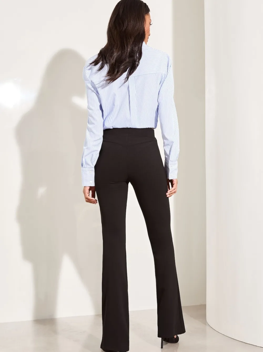 Contour bootleg trousers from Lipsy. versatile design to dress up or down. Featuring: Contour seaming Premium jersey fabric for a flattering fit Elasticated waist Model wears size 8. 97% polyester, 3% elastaan.