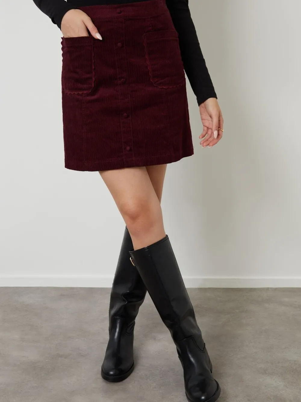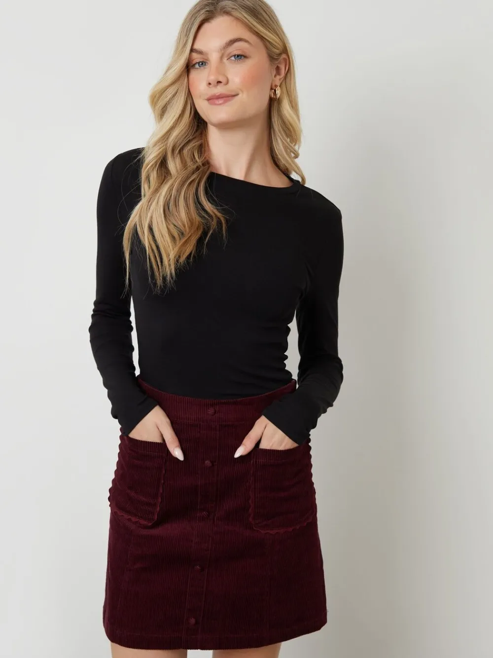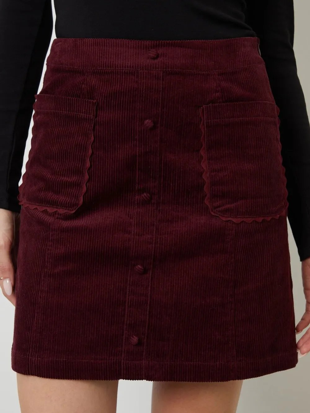 Step into the season with this Another Sunday corduroy mini skirt, a versatile piece you’ll reach for again and again. Crafted from a soft textured corduroy fabric, it features patch pockets with subtle ric rac trim and a clean side zip for a neat fit, whilst the self-fabric button detail down the front adds a hint of vintage style. Model wears UK size 8. Machinewasbaar. 100% katoen.
