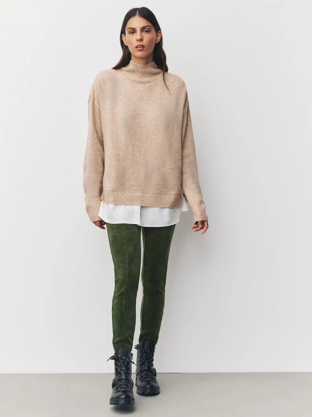 Achieve a comfortable yet stylish look with these soft cord leggings. The flattering pull-on design and stretch cord fabric offer all-day wearability, complemented by a chic front seam detail for an elevated everyday finish. Soft cord fabric Pull-on elasticated waist Front seam detail Regular voor binnenbeenlengte 29″ / 74 cm. Long voor binnenbeenlengte 31″/ 79 cm. Machinewasbaar. 99% gerecycled polyester, 1% elastaan. Artikelen met het curve-logo zijn verkrijgbaar in de maten 18 en groter. Onze tall collectie is ontworpen om te passen bij vrouwen van 5’10” en langer. Dit is verhoudingsgewijs vergroot door het lichaam, de benen en de mouwen om de perfecte pasvorm te bereiken. Verkrijgbaar in maat 8-20.