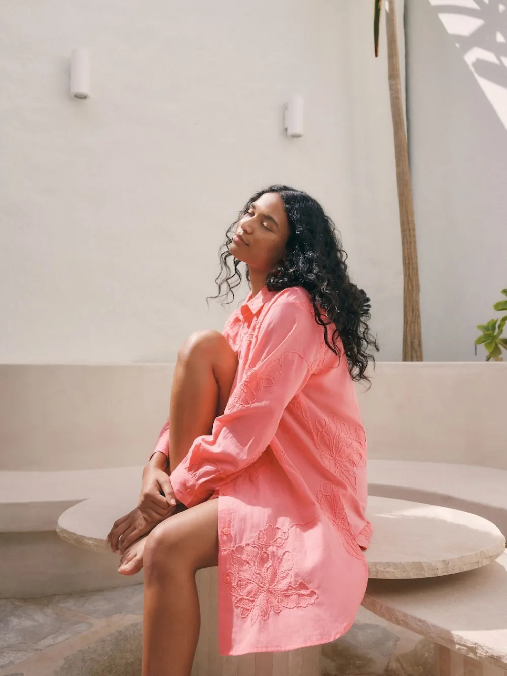 Dit koraalroze katoenen overhemd is textuurrijk en trendy, perfect als strandoutfit. Dit lange, oversized overhemd is voorzien van ingewikkelde Cornelli-details en heeft een knoopsluiting, lange mouwen en een klassieke kraag. Mix van rijk katoen Knoopsluiting Cornelli-details Oversized pasvorm Lange mouwen Machinewasbaar. 99% katoen, 1% nylon. Artikelen met het curve-logo zijn verkrijgbaar in de maten 18 en groter. Onze tall collectie is ontworpen om te passen bij vrouwen van 5’10” en langer. Dit is verhoudingsgewijs vergroot door het lichaam, de benen en de mouwen om de perfecte pasvorm te bereiken. Verkrijgbaar in maat 8-20.