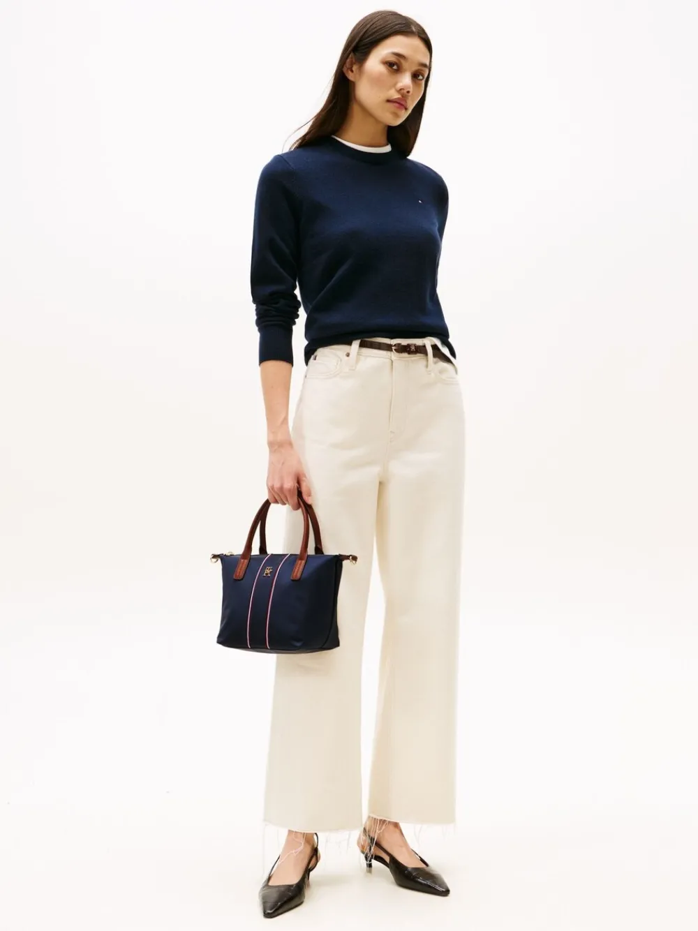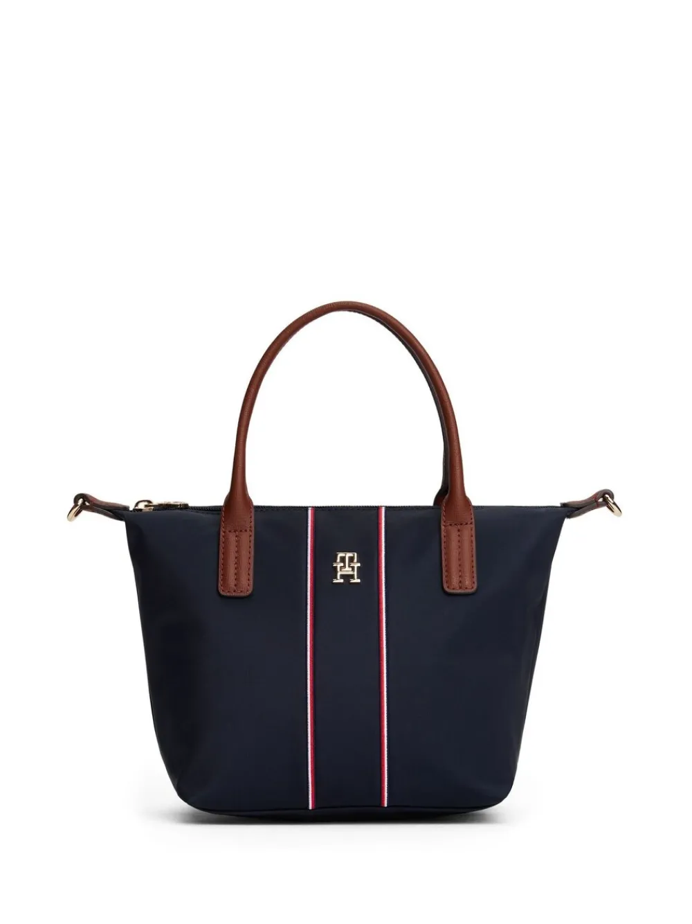 A sleek style for any occasion, this nylon tote bag showcases a heritage-inspired aesthetic and comes with a handy removable cross-body strap. Highlights: Nylon Zip closure Two top handles Removable webbing cross-body strap One main compartment One interior zipped pocket Signature detailing on front TH monogram plaque on front Tommy Hilfiger branding 90% Nylon, 10% leer.