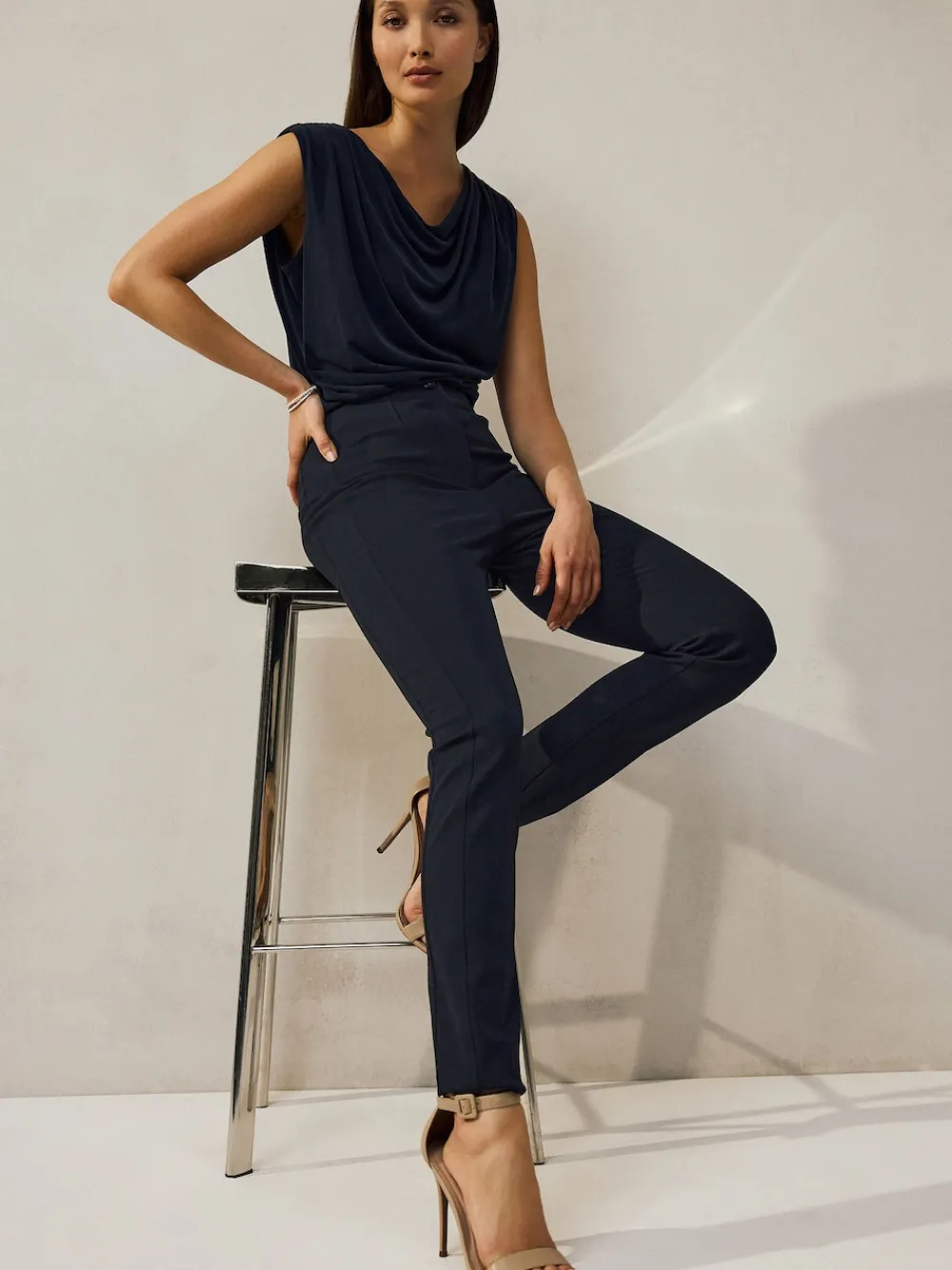 These sleek military-inspired trousers are designed with a skinny leg and strategic sculpting seams for a flattering fit. Their statement button adds a touch of sophisticated edge to your everyday style. Sculpting seams Skinny leg Military button detail Elasticated waistband Short voor binnenbeenlengte 27″ / 69cm. Regular voor binnenbeenlengte 29″ / 74cm. Lang genoeg voor binnenbeenlengte 31″ / 79cm. XL Tall voor binnenbeenlengte 33″ / 84cm. XXL Tall voor binnenbeenlengte 35″/ 89cm. Machinewasbaar. 59% Recycled polyester, 33% Livaeco™ Viscose, 5% Elastane, 3% Polyester. Artikelen met het curve-logo zijn verkrijgbaar in de maten 18 en groter. Onze tall collectie is ontworpen om te passen bij vrouwen van 5’10” en langer. Dit is verhoudingsgewijs vergroot door het lichaam, de benen en de mouwen om de perfecte pasvorm te bereiken. Verkrijgbaar in maat 8-20.