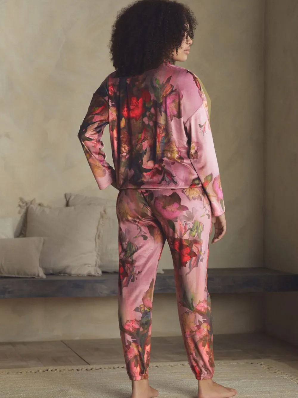 Slip into luxurious comfort with the B by Ted Baker Floral Cosy Twosie Pyjamas. This 2 piece set is crafted from a cosy and soft fleece fabric that’s perfect for relaxing. The dusky pink set features an all-over floral print in muted hues. The top is designed with a flattering V-neck, and both pieces are finished with a subtle branded hardware detail, adding a touch of signature B by Ted Baker style to your loungewear. 2 piece set Soft fleece fabric Branded hardware Machinewasbaar. Pyjamatop en pyjamabroek van 94% gerecycled polyester, 6% elastaan. Artikelen met het curve-logo zijn verkrijgbaar in de maten 18 en groter.