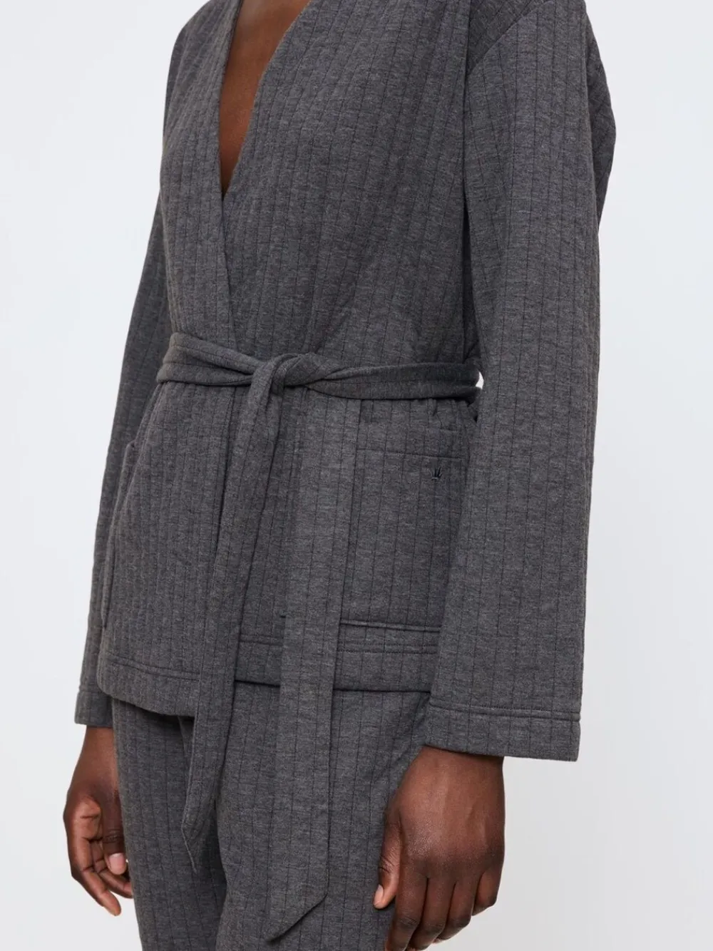 This quilted robe top is perfect for lounging or layering. Featuring relaxed dropped shoulder a waistbelt and pockets it provides a contemporary and flattering fit. Crafted from soft and warm quilted fabric. Machinewasbaar. 97% polyester, 3% elastaan.