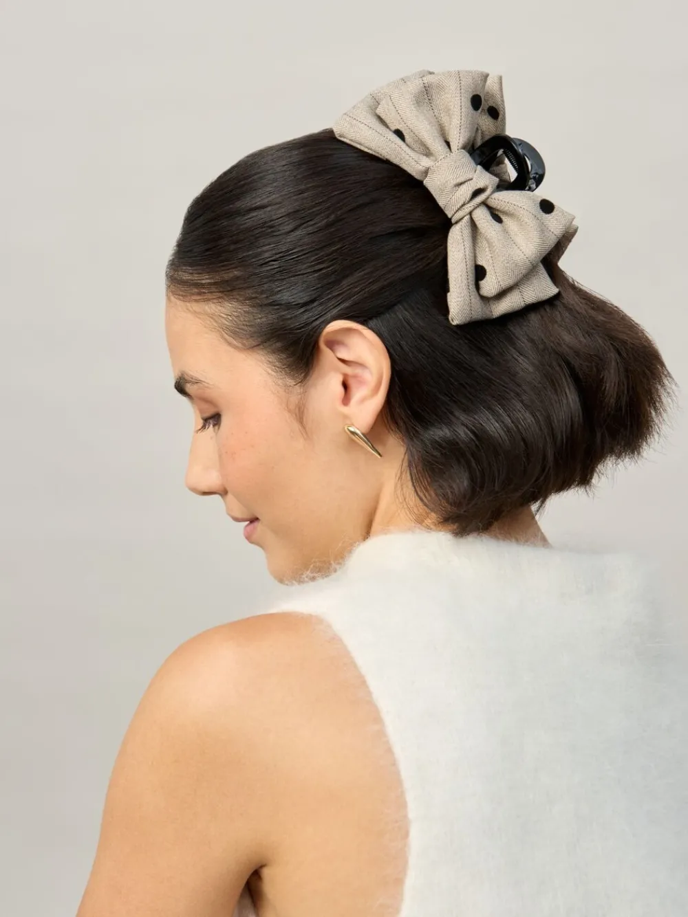 Cream Tweed Polka Dot Bow Claw*Aela Hot