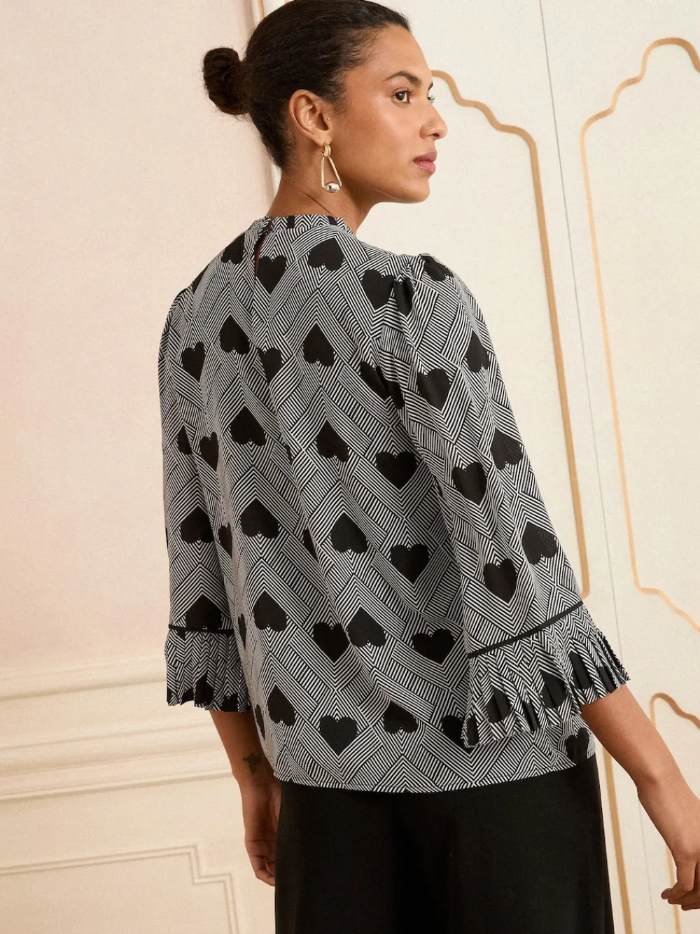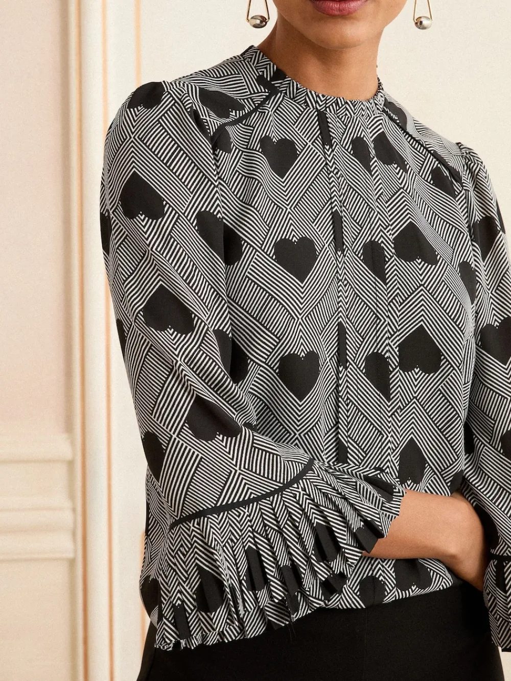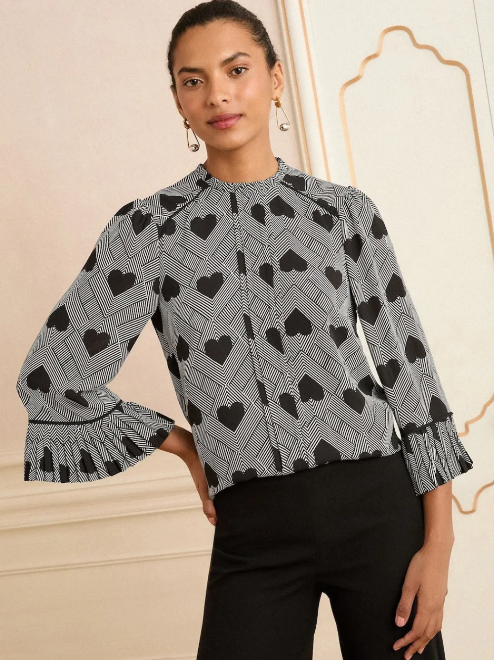 Step out in playful sophistication with this charming blouse. The elegant crew neckline and contrasting pattern are complemented by statement pleated flute sleeves, making this the perfect piece for seamless desk-to-dinner styling. Pleated flute sleeve detail Crew neckline Hoofdbestanddeel 100% polyester. Voering 100% polyester.