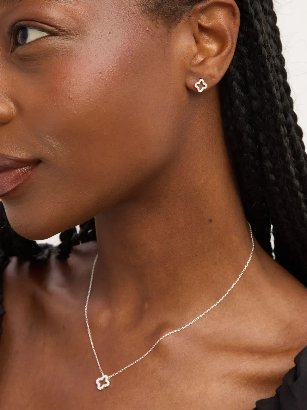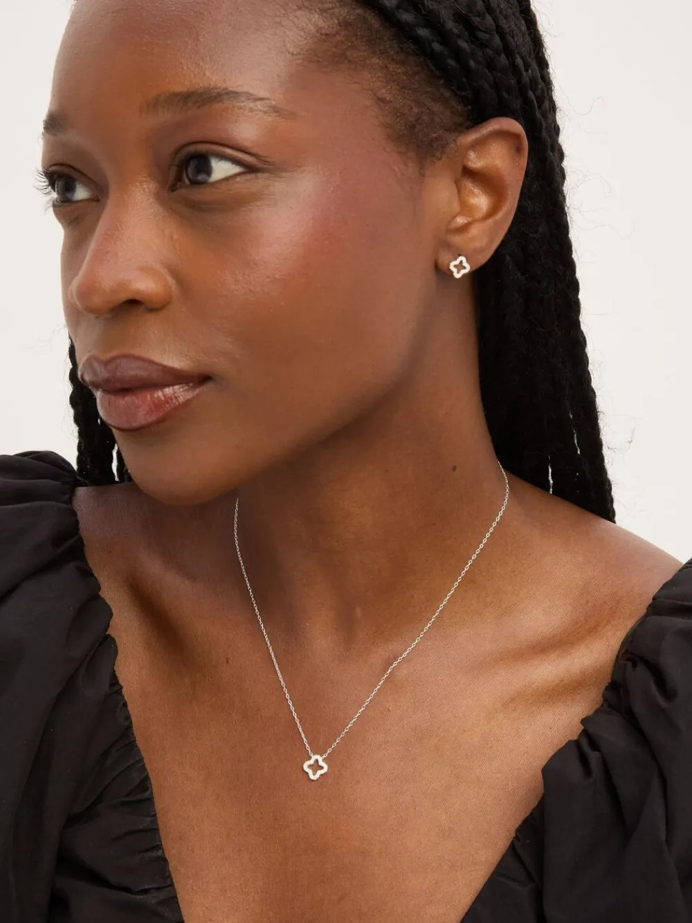 Cubic Zirconia Pave Open Clover Gift Box Set*Simply Silver Sale
