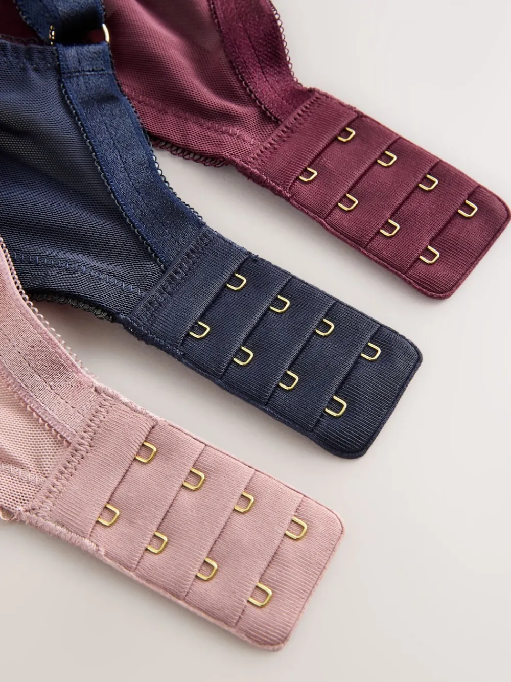 – DD+ Beha’s met volledige cups zonder vulling, set van 3 met kantversiering*Next Outlet