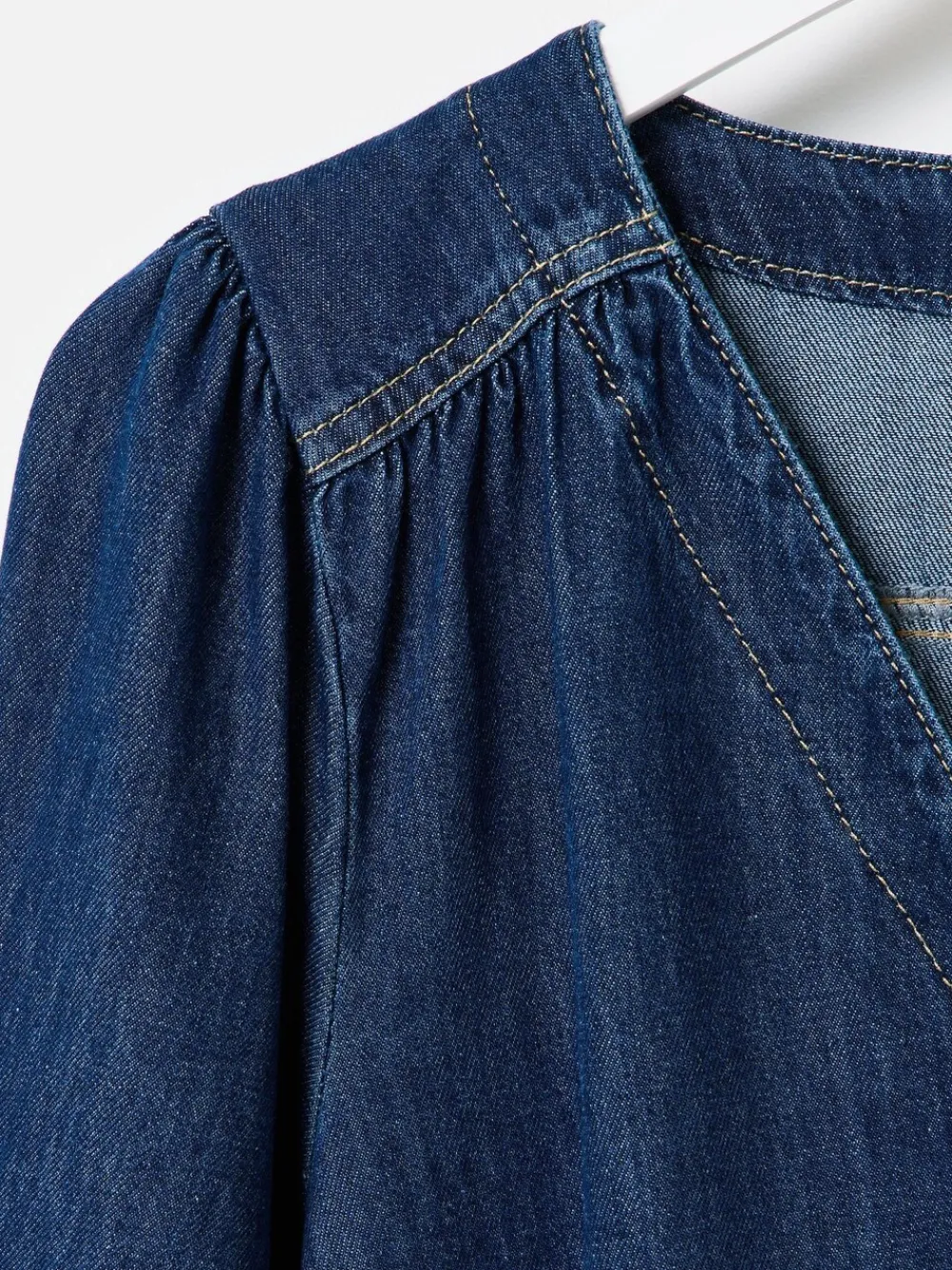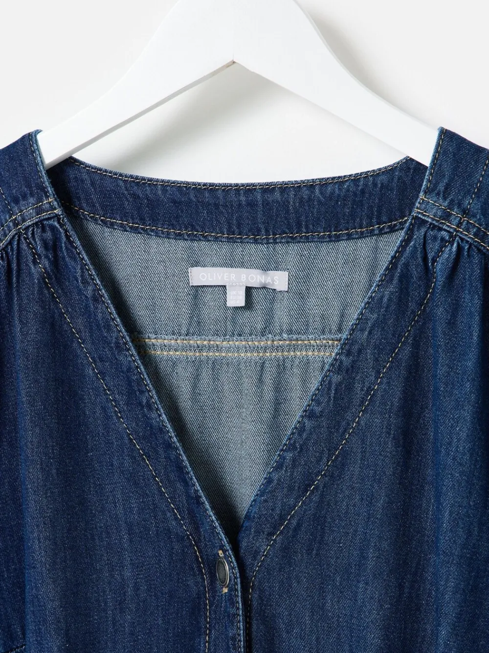 Denim V-Neck Tie Waist Jumpsuit*Oliver Bonas Online