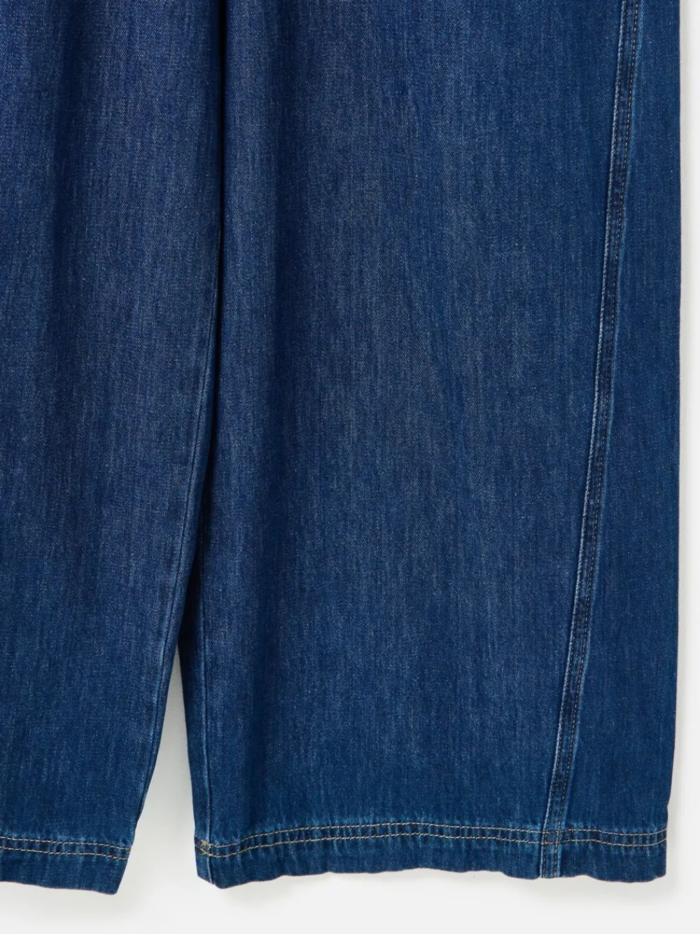 Looking for a one-hit wonder that makes dressing a breeze? Presenting our denim jumpsuit in a dark blue wash with silver-toned buttons down the bodice. With a V-shaped neckline, long sleeves, and a matching tie waist belt to add shape, it’s complete with a relaxed, wide-leg silhouette. Standaard binnenbeenlengte 58,5″/148 cm. Machinewasbaar. 100% katoen.