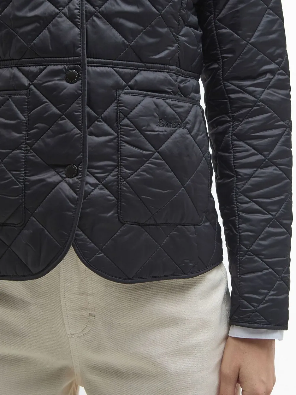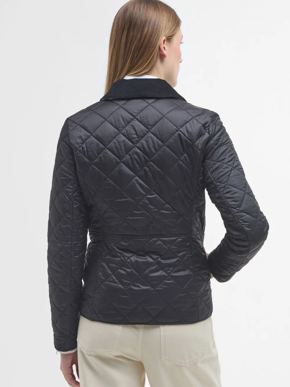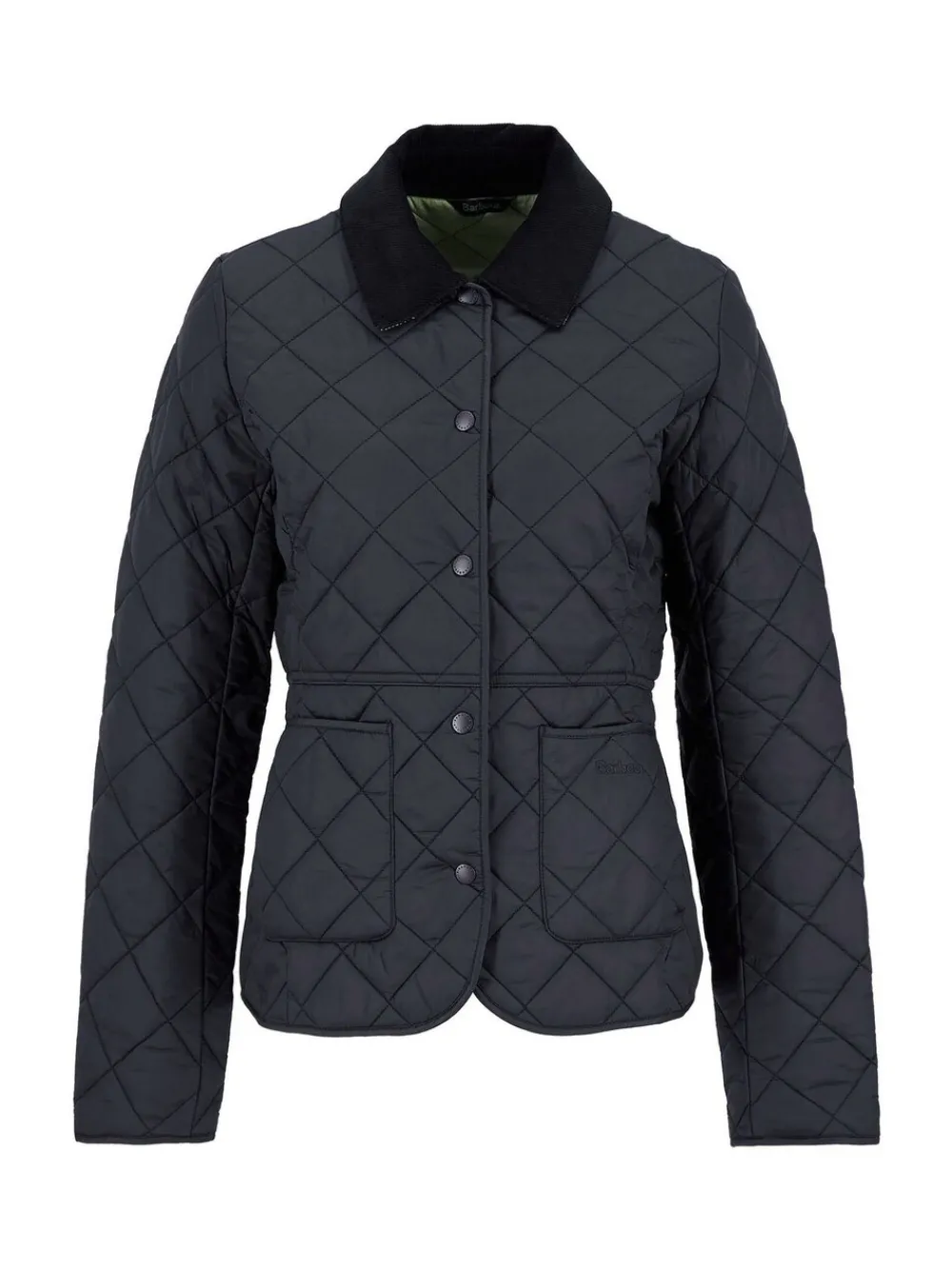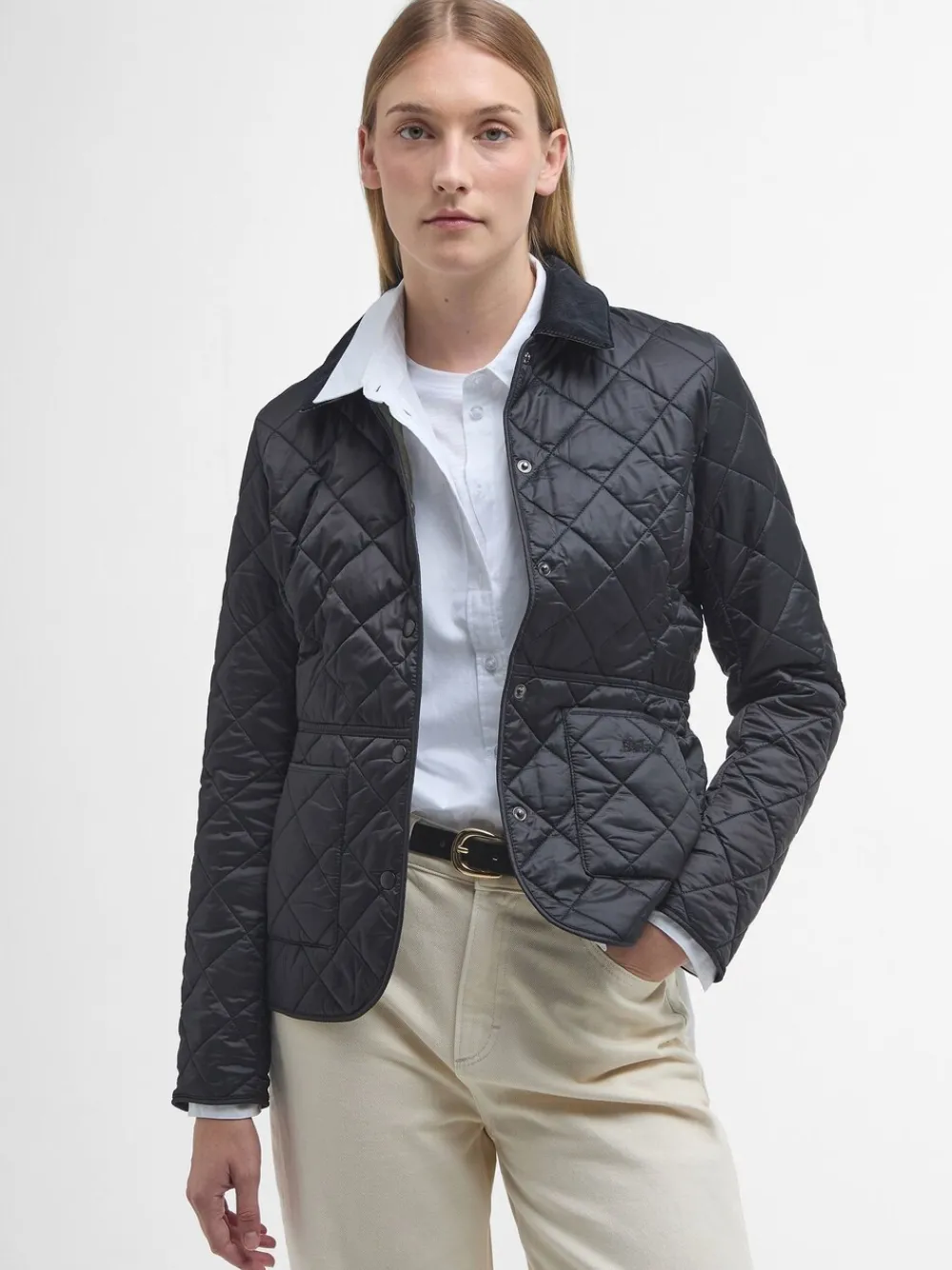 The Barbour Deveron jacket is box quilted with a corduroy collar and a feminine contrast lining. It features two practical patch pockets to the front and embroidered Barbour branding for an authentic touch. 100% nylon. Artikelen met het curve-logo zijn verkrijgbaar in de maten 18 en groter.