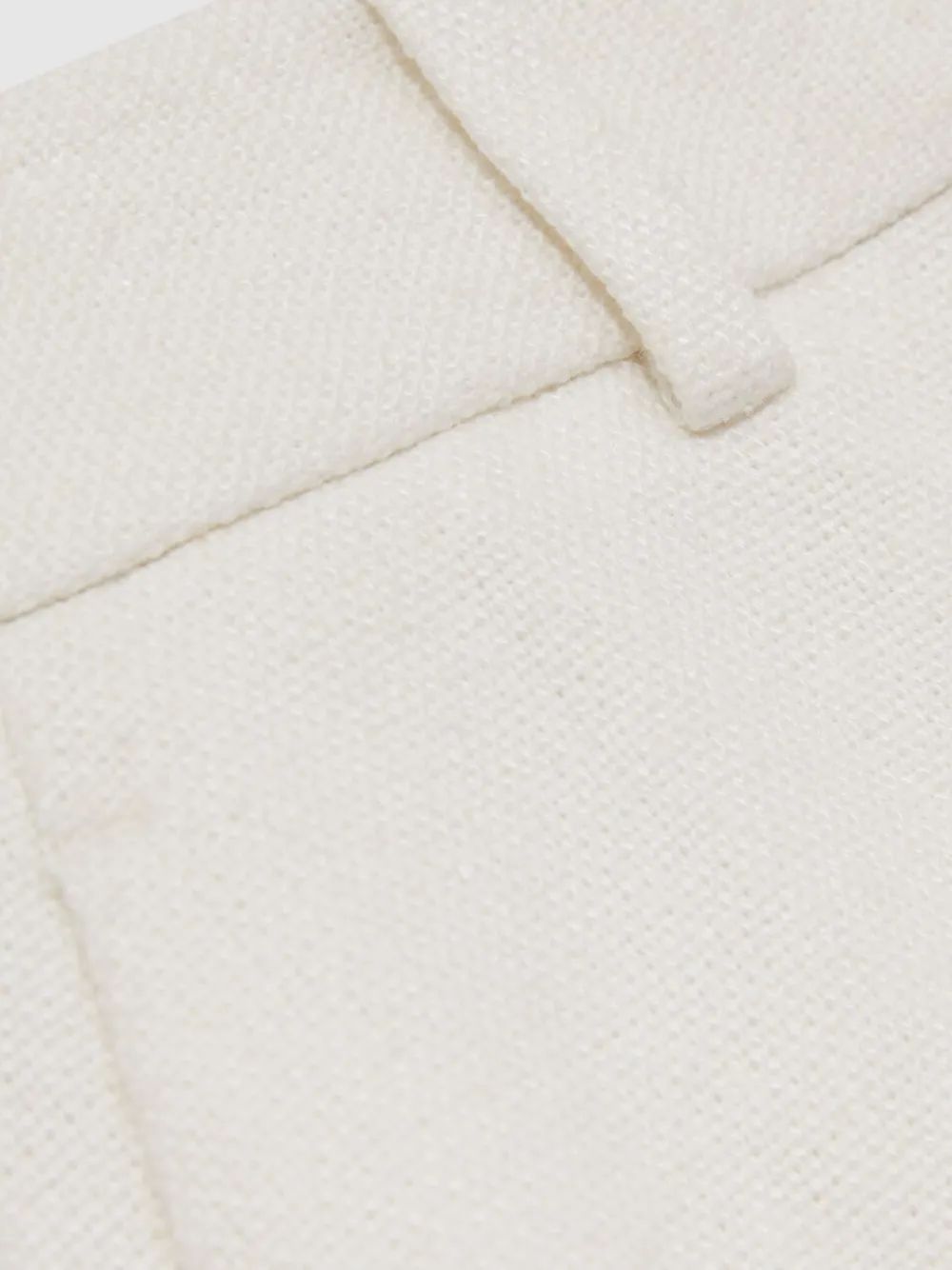 De Devon shorts zijn gemaakt van een lichtgewicht linnenmix en vormen de perfecte balans tussen een casual stijl en verfijnde elegantie. Geperste vouwen versterken de gepolijste uitstraling. Linnenmix geperste vouw, zijzakken, dubbele haak en rits. Het model draagt maat 8. Afmetingen van het model: 5ft 9.5 ” / 176.5cm. Standaard met binnenbeenlengte van 3″ / 8 cm. Alleen chemisch reinigen. 55% viscose, 45% linnen.