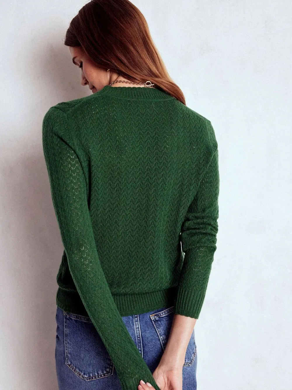 A lightweight knit with pretty scallop trim, pointelle stitching for added texture, and a paintbox of gorgeous colours from brights to neutrals to choose from. Made to last and to layer, this jumper is your new year-round staple. Machinewasbaar. 33% viscose, 23% nylon, 20% katoen, 20% wol, 4% kasjmier.