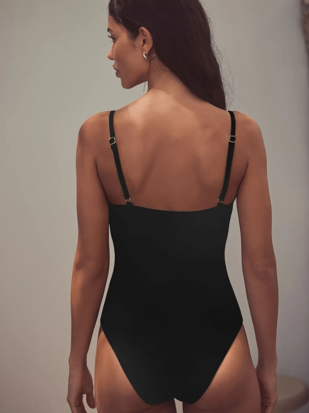 Make a summer style statement with this swimsuit. It features a plunging neckline and shaping mesh to the stomach for a smooth look. The swimsuit also includes central trim detailing and is made with SPF 50+ fabric. Plunge neckline Tummy control mesh SPF 50+ fabric Trim detailing Black/Green leaf print Hoofdbestanddeel 85% nylon, 15% LYCRA® XTRA LIFE™ elastaan. Voering 92% gerecycled polyester, 8% elastaan. Mesh 88% nylon, 12% elastaan. Artikelen met het curve-logo zijn verkrijgbaar in de maten 18 en groter. Onze tall collectie is ontworpen om te passen bij vrouwen van 5’10” en langer. Dit is verhoudingsgewijs vergroot door het lichaam, de benen en de mouwen om de perfecte pasvorm te bereiken. Verkrijgbaar in maat 8-20.