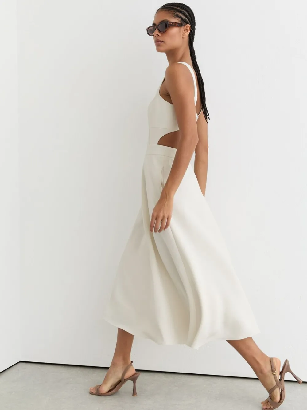 The Dina midi dress is crafted from twill with a fitted, boned bodice and gently flared skirt, creating a waisted silhouette. A cut-out back adds a modern touch. Twill fabric Cut-out back Boned bodice Square neckline Wide shoulder straps Subtly flared skirt Side slip pockets Concealed back zip The model is wearing a size 8 Measurements of model: 5ft9 / 175cm Standaardmaat van de zijkant van de nek tot de zoom 49″ / 125 cm. Machinewasbaar. 100% polyester.