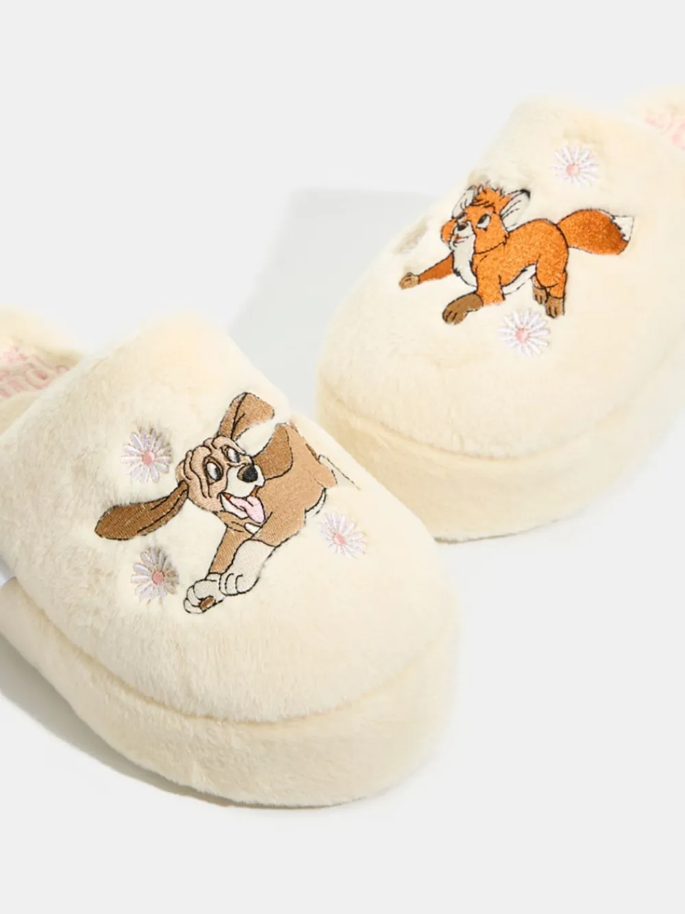 Step into cozy comfort with the Disney Fox and The Hound Slippers from Skinnydip. Inspired by the heartwarming friendship of Copper and Tod from Disney’s classic animated film, these slippers are the perfect way to add a touch of nostalgia and warmth to your loungewear. Bovenwerk – 100% polyester, voering en sok – 100% polyester. Zool – 100% rubber.