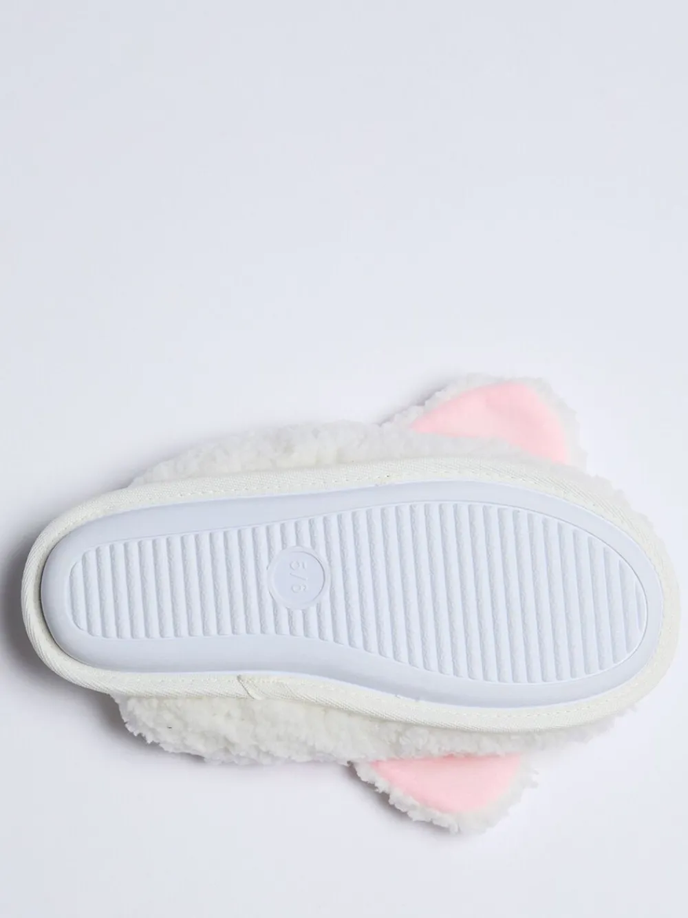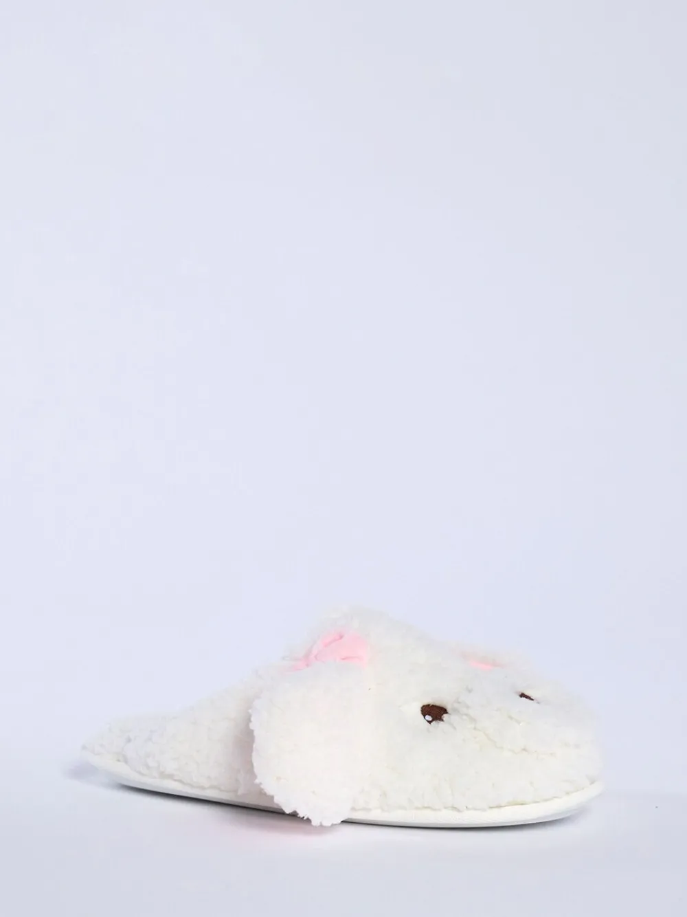 Slide into complete comfort with our adorable dog mule slippers. Super soft and cosy, you need a pair of these to complete your nightwear look! Mule slippers, Dog embroidered design, 3D bow detailing, Soft borg fur, closed-toe design. Bovenwerk – 100% polyester, voering en sok – 100% textiel. Zool – 100% andere vezels.