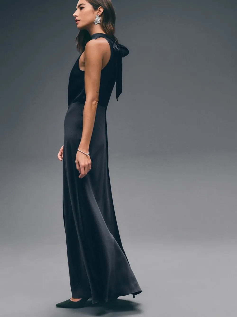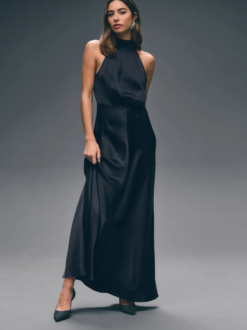 Our halter sleeveless black maxi dress is the perfect occasion outfit that offers a textured satin fabric. In a flattering halterneck silhouette with an a-line skirt, this maxi number is ideal for summer weddings. Style with strappy heels to dress for the occasion. Textured satin fabric Halterneck Maxi length A-line skirt Standaardmaat van de zijkant van de nek tot de zoom 50″ / 127 cm. Machinewasbaar. 51% gerecycled polyester, 47% polyester, 2% elastaan. Artikelen met het curve-logo zijn verkrijgbaar in de maten 18 en groter. Onze tall collectie is ontworpen om te passen bij vrouwen van 5’10” en langer. Dit is verhoudingsgewijs vergroot door het lichaam, de benen en de mouwen om de perfecte pasvorm te bereiken. Verkrijgbaar in maat 8-20.