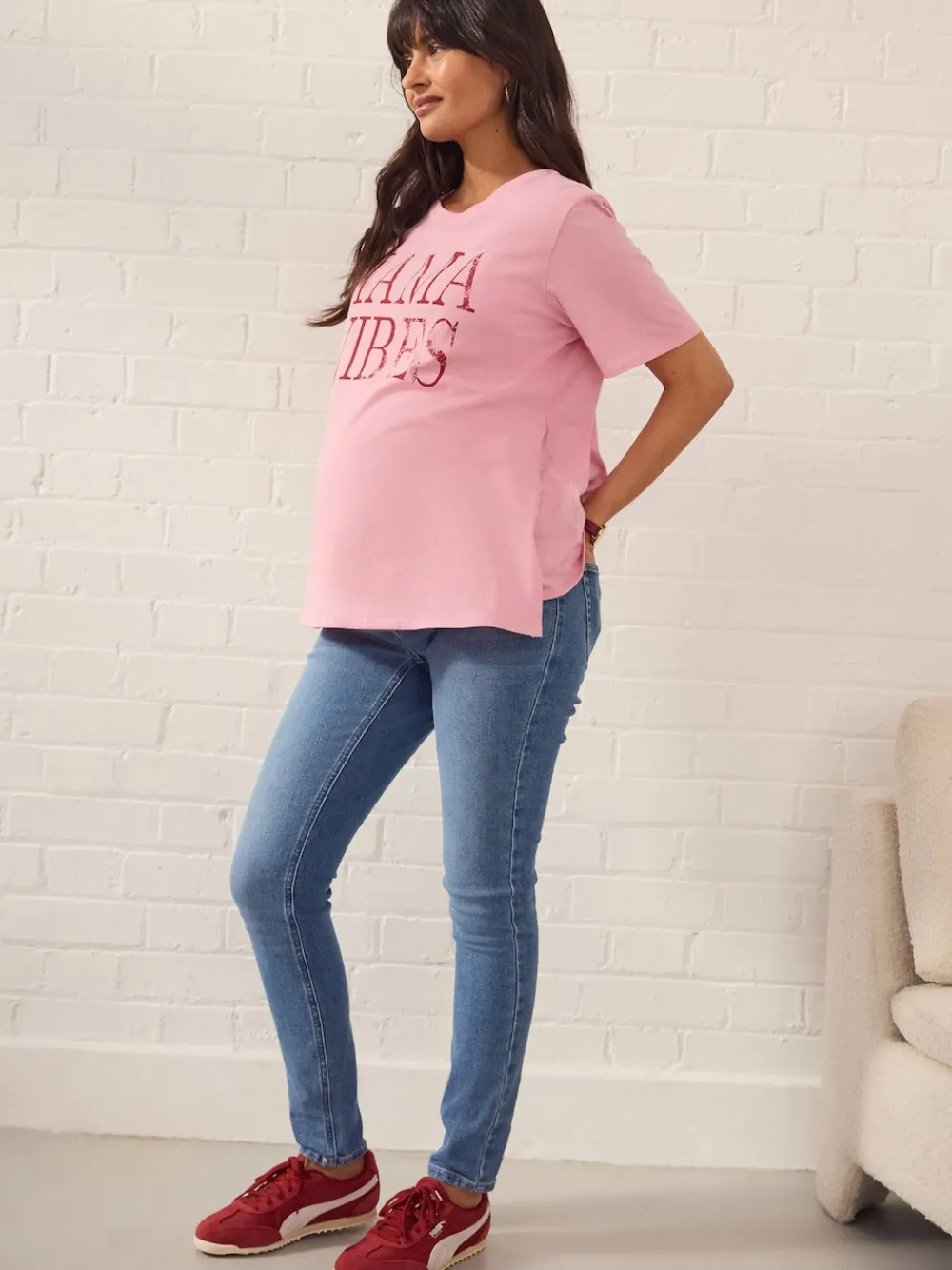 The perfect denim to take you through your pregnancy, with over-the-bump bands for comfort. Short voor binnenbeenlengte 27″ / 69cm. Regular voor binnenbeenlengte 29″ / 74cm. Lang genoeg voor binnenbeenlengte 31″ / 79cm. Machinewasbaar. Main 94% Cotton, 5% Elastomultiester, 1% Elastane. Upper Lining 90% Viscose, 10% Elastane.