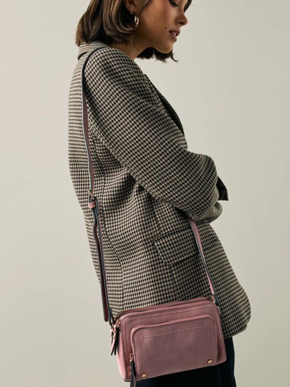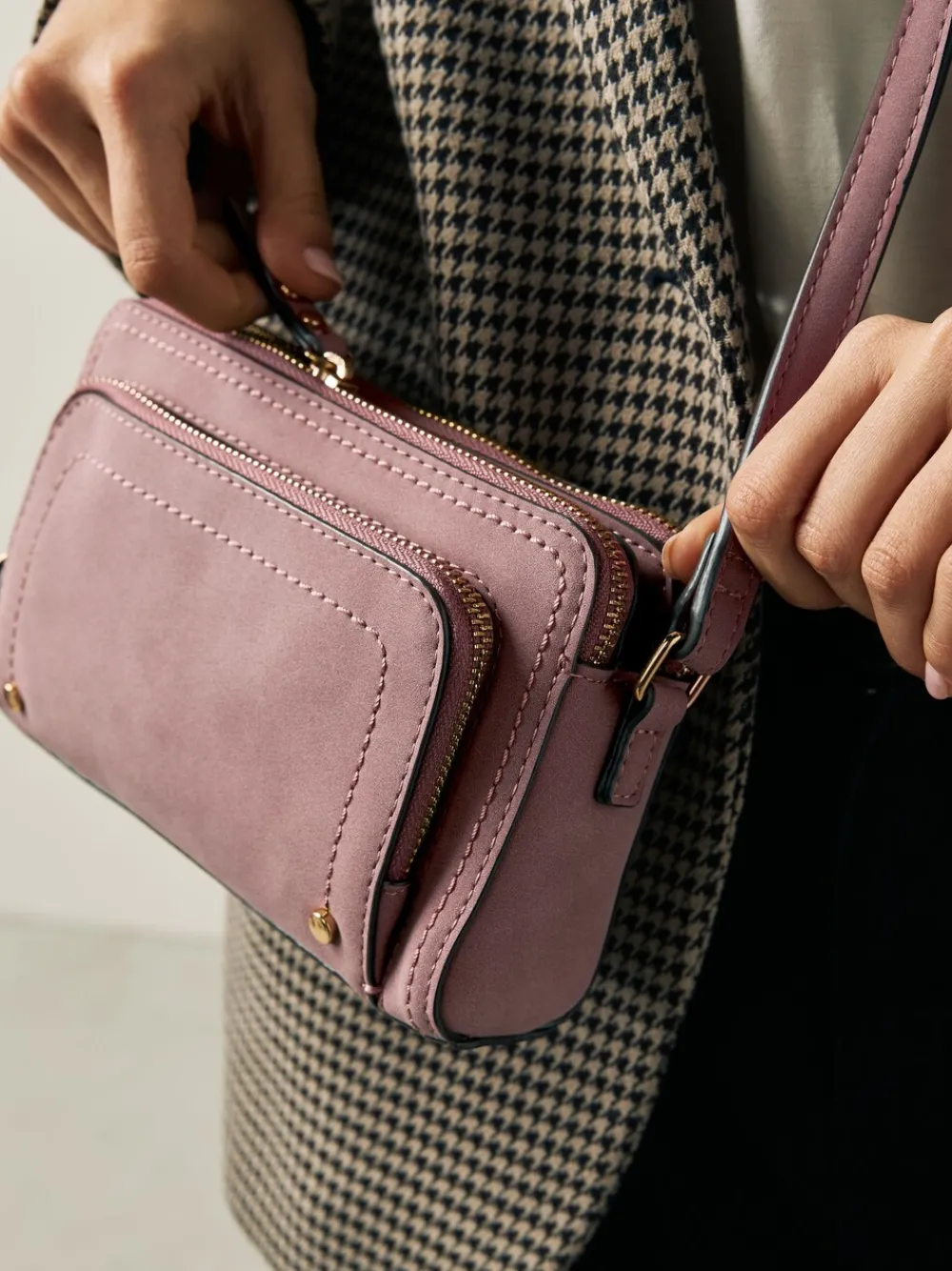 – Double Zip Cross-Body Faux Suede Bag*Next Outlet