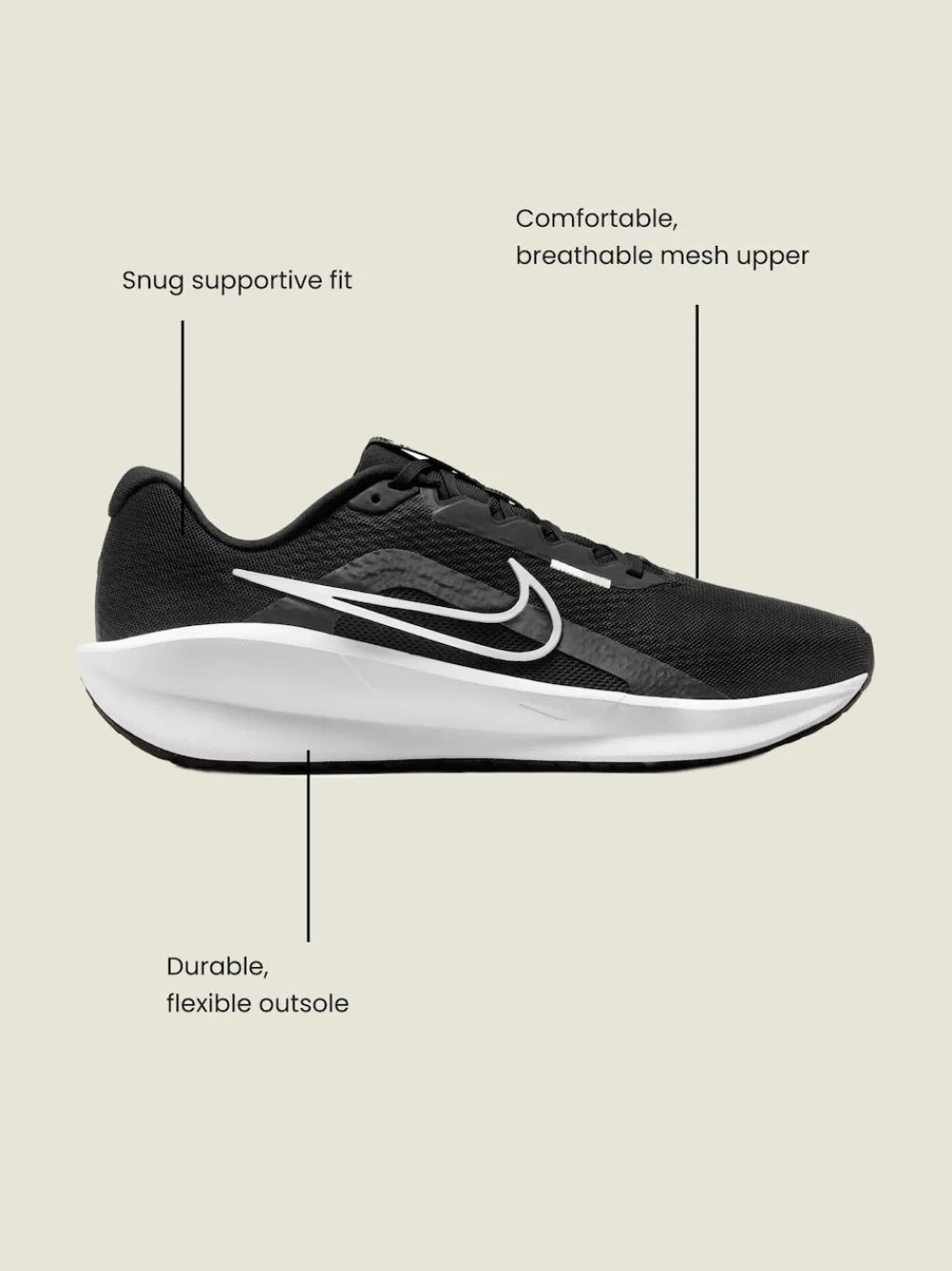 Nike Downshifter 13 Women s Road Running Shoes Whether you’re starting your running journey or an expert eager to switch up your pace, the Downshifter 13 is down for the ride. With a revamped upper and cushion and durability, it helps you find that extra gear or take that first stride toward chasing down your goals. Made with Nike Grind The outsole is made from at least 15% Nike Grind material, made from scraps from the footwear manufacturing process. Breathable. Mesh Soft and comfortable mesh offers a high level of breathability. Supportive and Secure An updated internal fit band offers containment around the midfoot for support and security. Bovenwerk – textiel. Voering en voetbed – Textiel zool – Andere materialen.