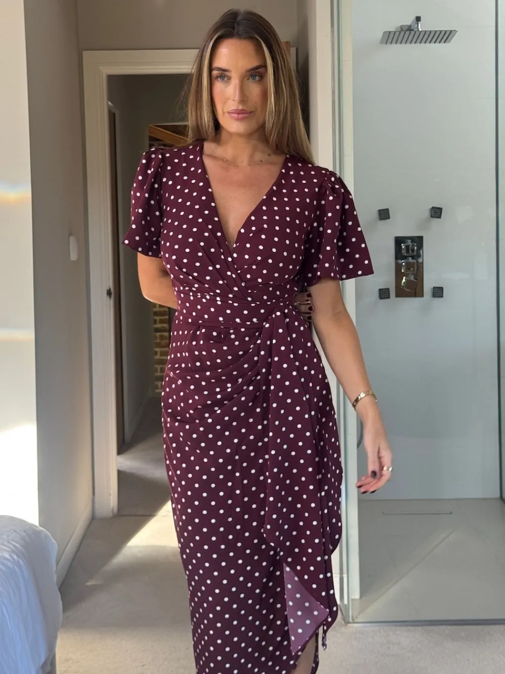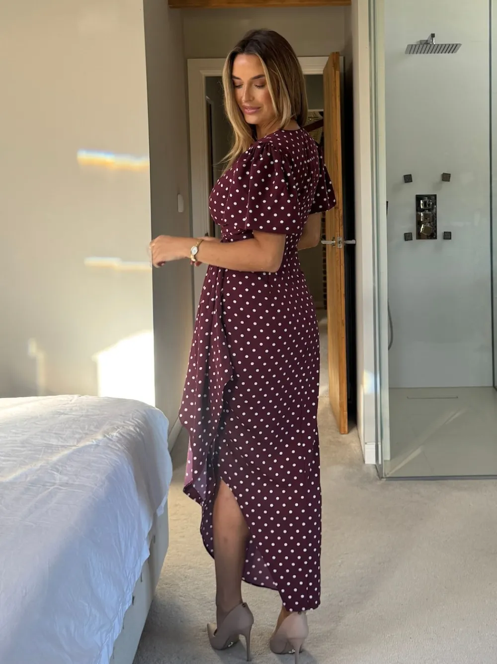 Drew Polka Dot Puff Sleeve Wrap Front Midi Dress*Girl In Mind Discount