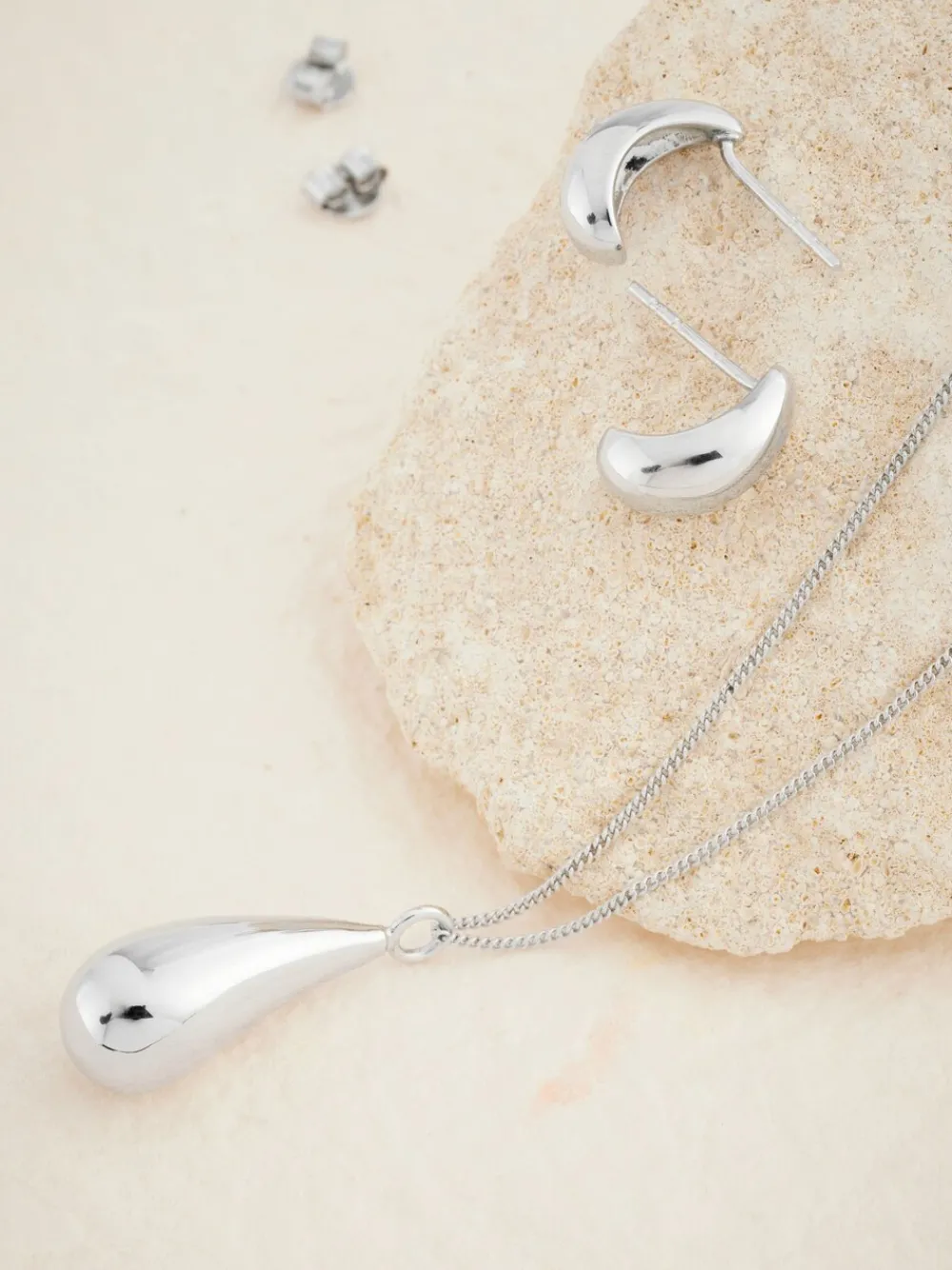 Deze druppelvormige oorbellen zijn perfect voor elke dag. Ze zijn klein van formaat en worden geleverd met een stekersluiting. Combineer met de bijpassende ketting voor een complete look. Druppelvormige oorbel Afmeting: 11mm x 6mm Bijpassende ketting verkrijgbaar 100% zilver (echt).