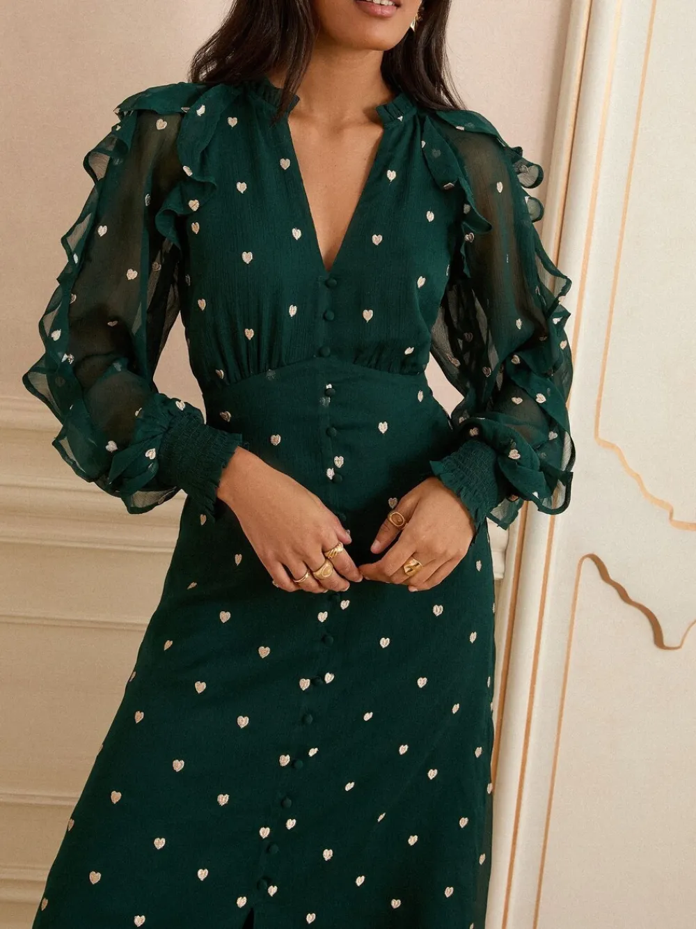 – Embroidered Ruffle Midi Dress*Love & Roses Sale
