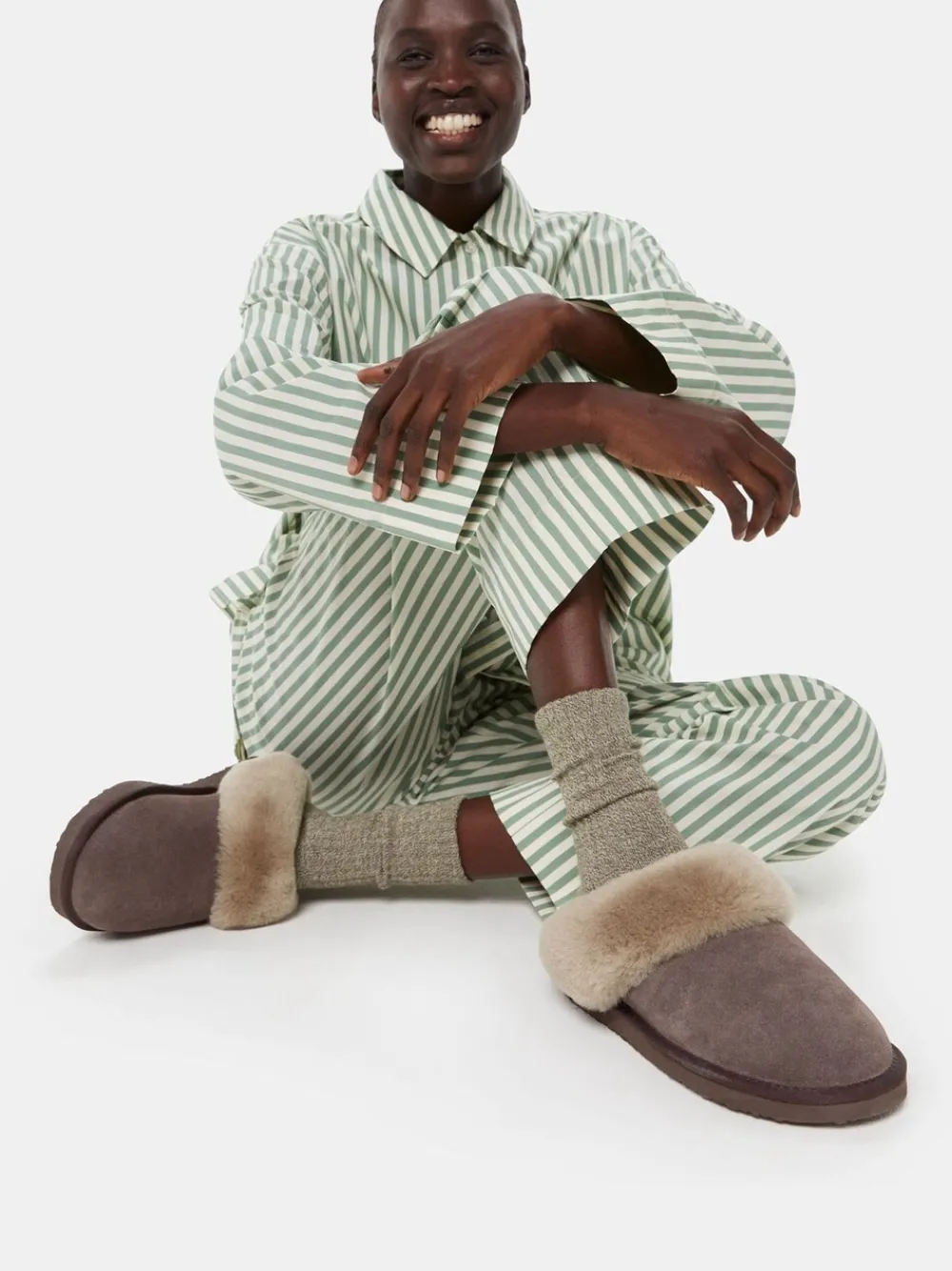 WHISTLES Taupe Emilia Cuff Slipper. Hoofdbestanddeel – 100% leer. Zool – 100% EVA.