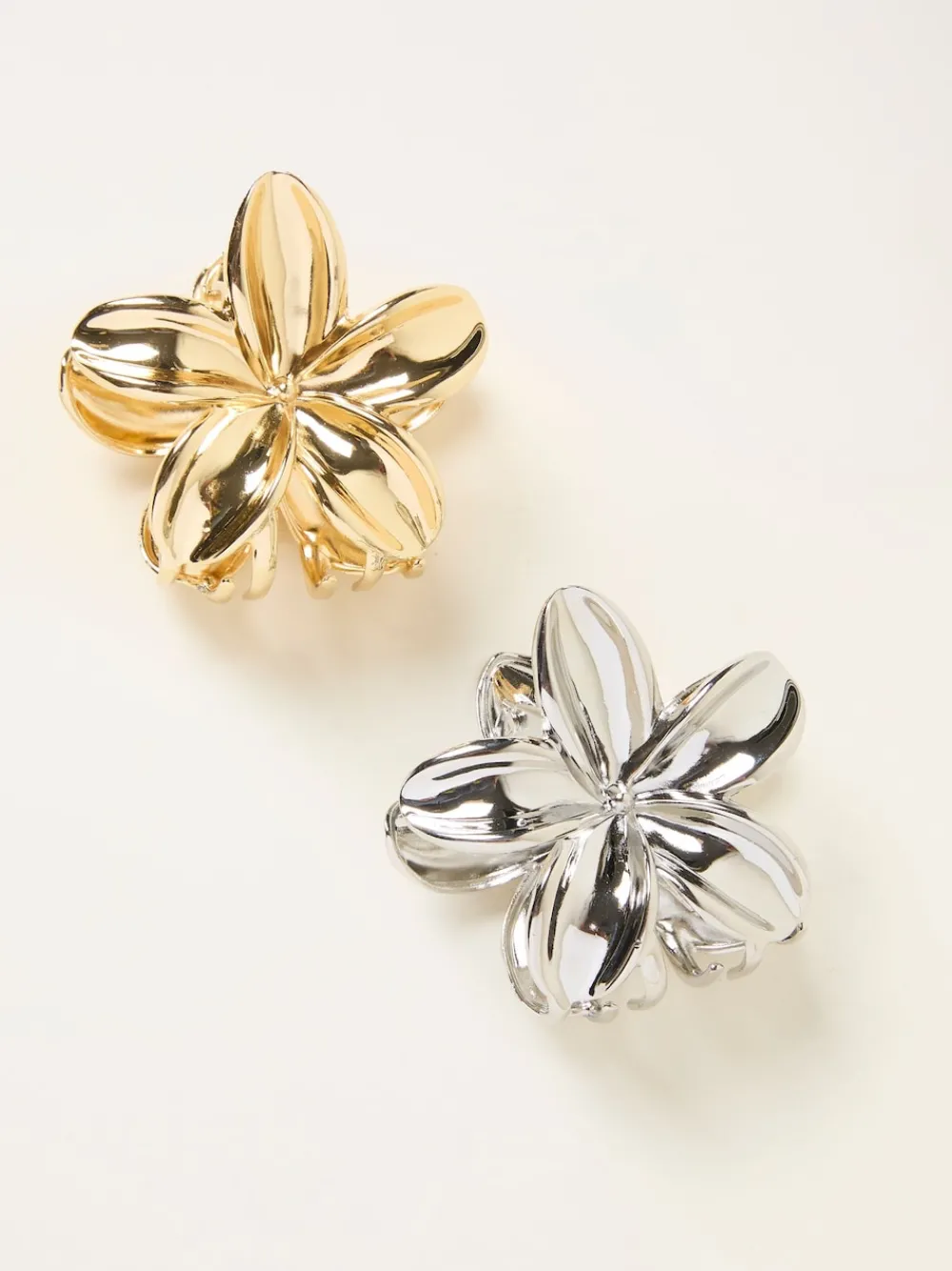 Essential for all hairstyles, this 2 pack of metal flower claw clips will keep your hair off your face whilst looking sleek and stylish. 100% metaal.