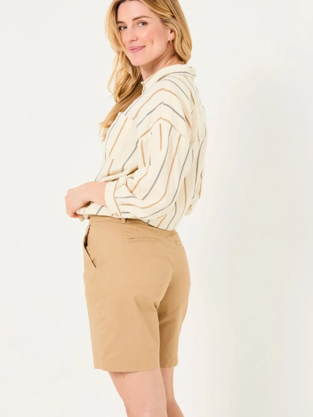 Onze korte chino zijn onmisbaar voor warm weer. Ze hebben een klassieke pasvorm en een moderne, relaxte uitstraling. Ze zijn gemaakt van zacht, ademend materiaal en daarom perfect voor een weekendbrunch, een stadswandeling of een uitstapje naar de kust. Draag ze met een overhemd of houd het casual met een klassiek T-shirt. – versatile, stylish and ready for any summer adventure. Model is 5’9”/175cm and wears UK size 8 Standaard binnenbeenlengte 8,5″/22 cm. Machinewasbaar. 97% Katoen, 3% elastaan.
