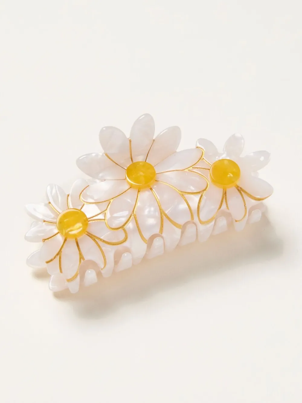 Essential for all hairstyles, this daisy claw clip will keep your hair off your face whilst looking sleek and stylish. 100% hars.
