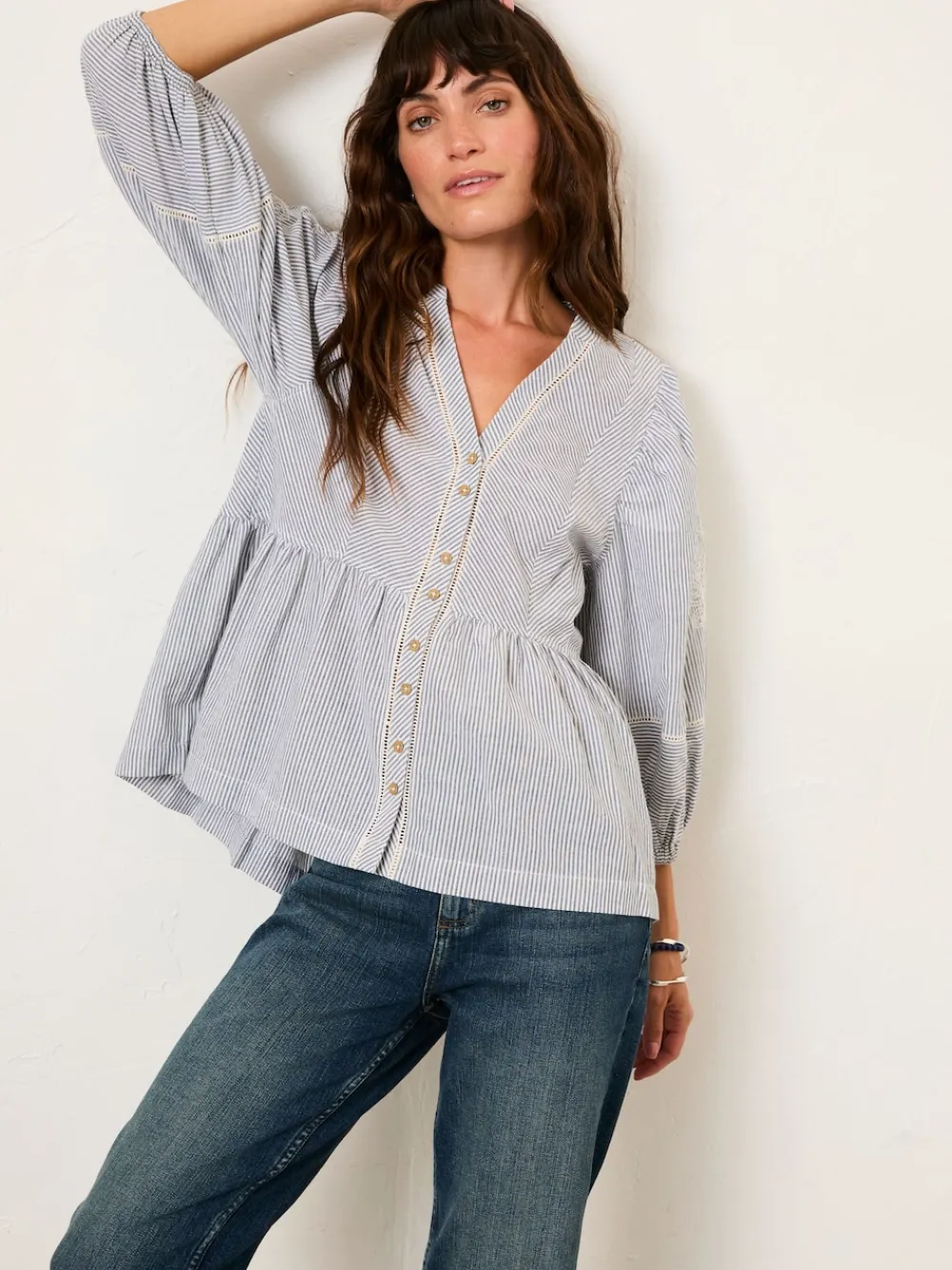 Delicate details meet everyday ease in our Rosalie embroidered blouse. With a flattering V-neckline, button-down front, and gently ballooned sleeves, it’s designed for relaxed styling with a touch of elegance. Finished with subtle embroidery for added texture, it’s perfect for pairing with jeans for a casual feel or a skirt for a polished look. Machinewasbaar. Hoofdbestanddeel 100% katoen. Borduursel 100% katoen. Kant 100% polyester.