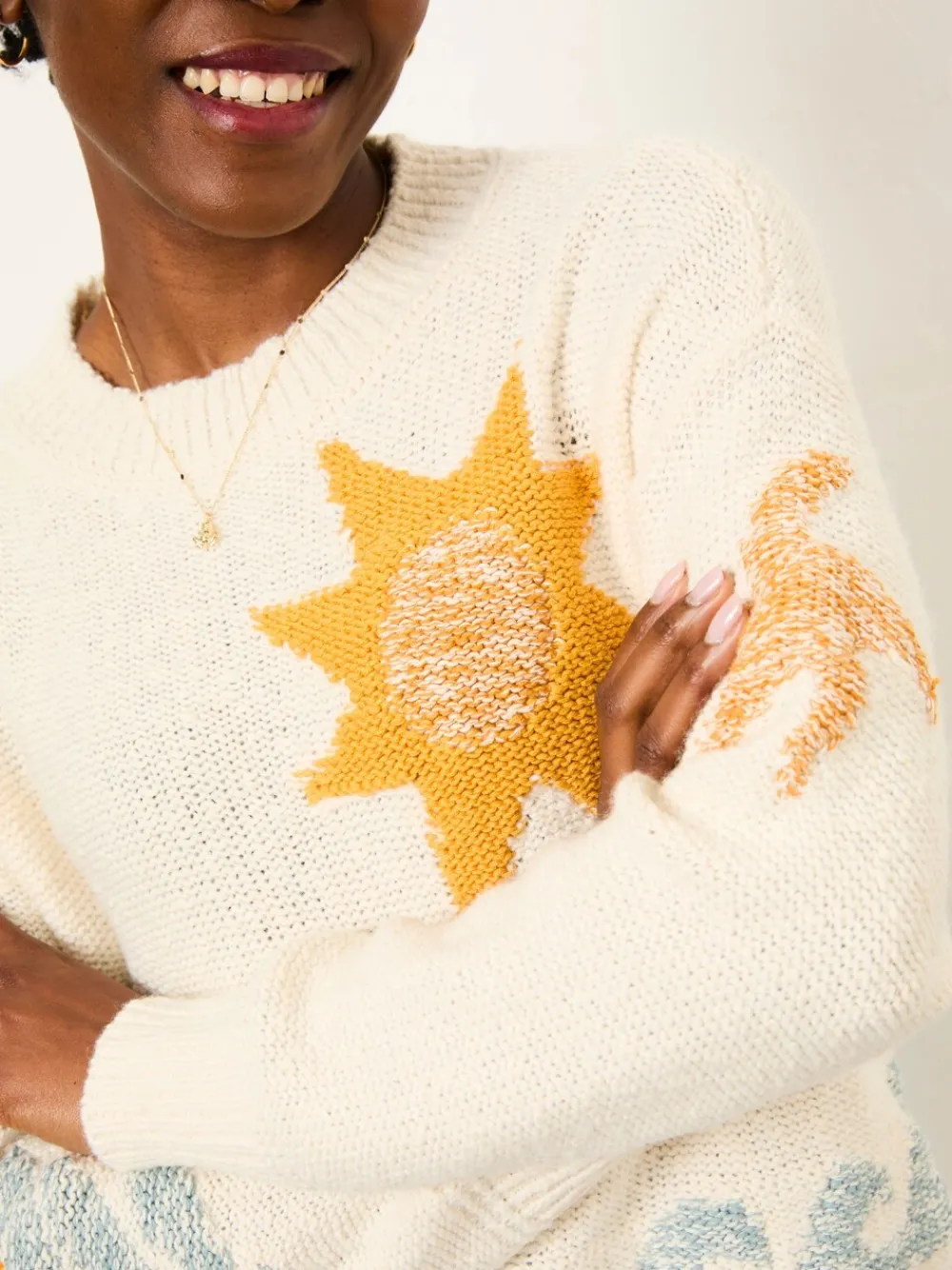 The Mila knitted surf pattern jumper channels laid-back, beach-inspired style with every wear. Crafted from soft yarn in a relaxed fit, it’s perfect for layering on breezy days. The surf-inspired pattern adds a playful twist, making it a standout piece for off-duty dressing with a splash of personality. Simply pair with your favourite jeans and trainers for casual style. Machinewasbaar. Main 66% Cotton, 21% Recycled Nylon, 11% Recycled polyester, 2% Wool. Panel 100% Cotton. Rib 64% Cotton, 21% Recycled Nylon, 11% Recycled polyester, 2% Nylon, 1% Elastane, 1% Wool.