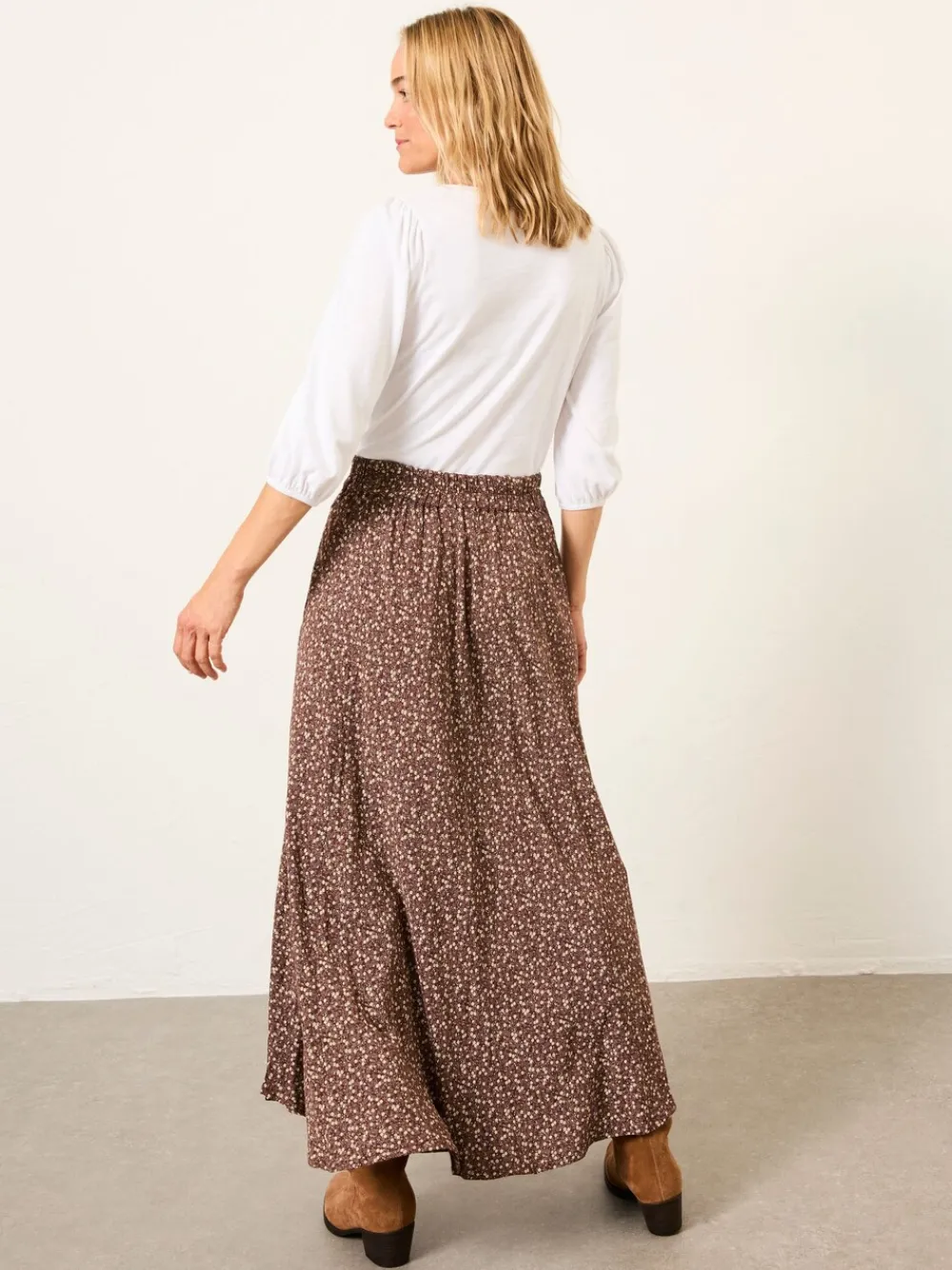 The Sadie midi skirt is crafted from 100% viscose fabric making it light and airy with a soft drape and all-over ditsy print. Designed with a comfortable waistband and easy A-line shape, it’s perfect for sunny days, weekend plans, or dressing up just a little. Simply pair it with a tee, blouse or knit. Standaard van tailleband tot zoom 35″ / 89 cm. Machinewasbaar. 100% viscose.