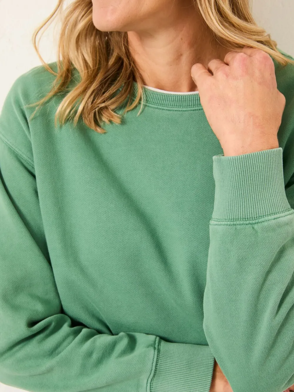Our Georgia crew sweatshirt is your go-to for laid-back days. With 100% soft cotton and a relaxed fit, it’s perfect for errands, coffee runs, or lounging at home. Ribbed trim keeps the look polished, while the easy silhouette pairs effortlessly with denim, leggings, or even over a dress. Model is 5’9’/175cm and wears UK size 8. Machinewasbaar. Body 100% biologisch katoen. Ribstof 98% biologisch katoen, 2% elastaan.