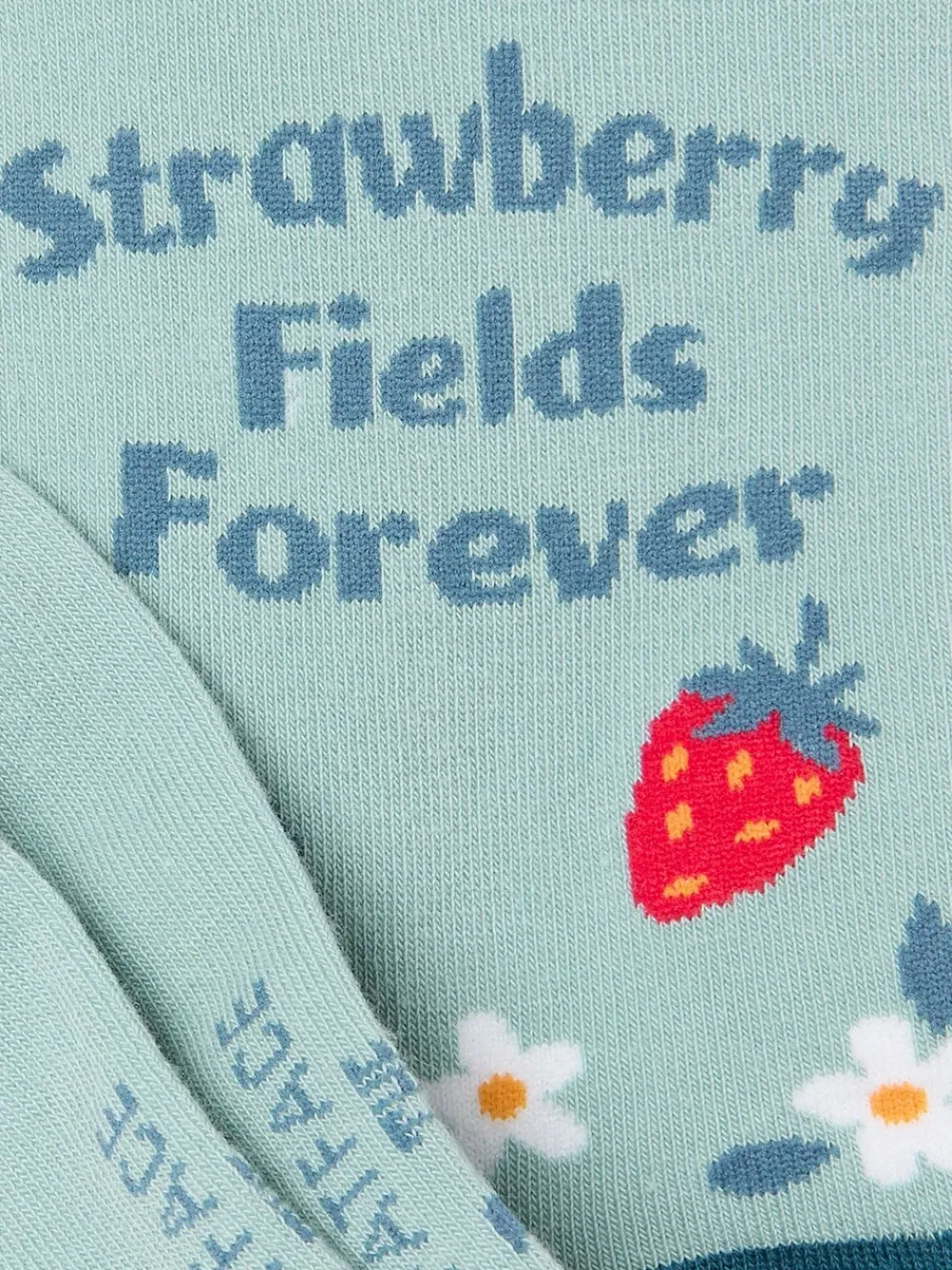 A little pop culture, a lot of comfort. These soft cotton socks feature a vibrant Strawberry Fields print inspired by The Beatles’ iconic track. Finished with contrast heels and toes, they’re a fun nod to music history – perfect for gifting or adding personality to your everyday. Machinewasbaar. 53% nylon, 45% katoen, 2% elastaan.