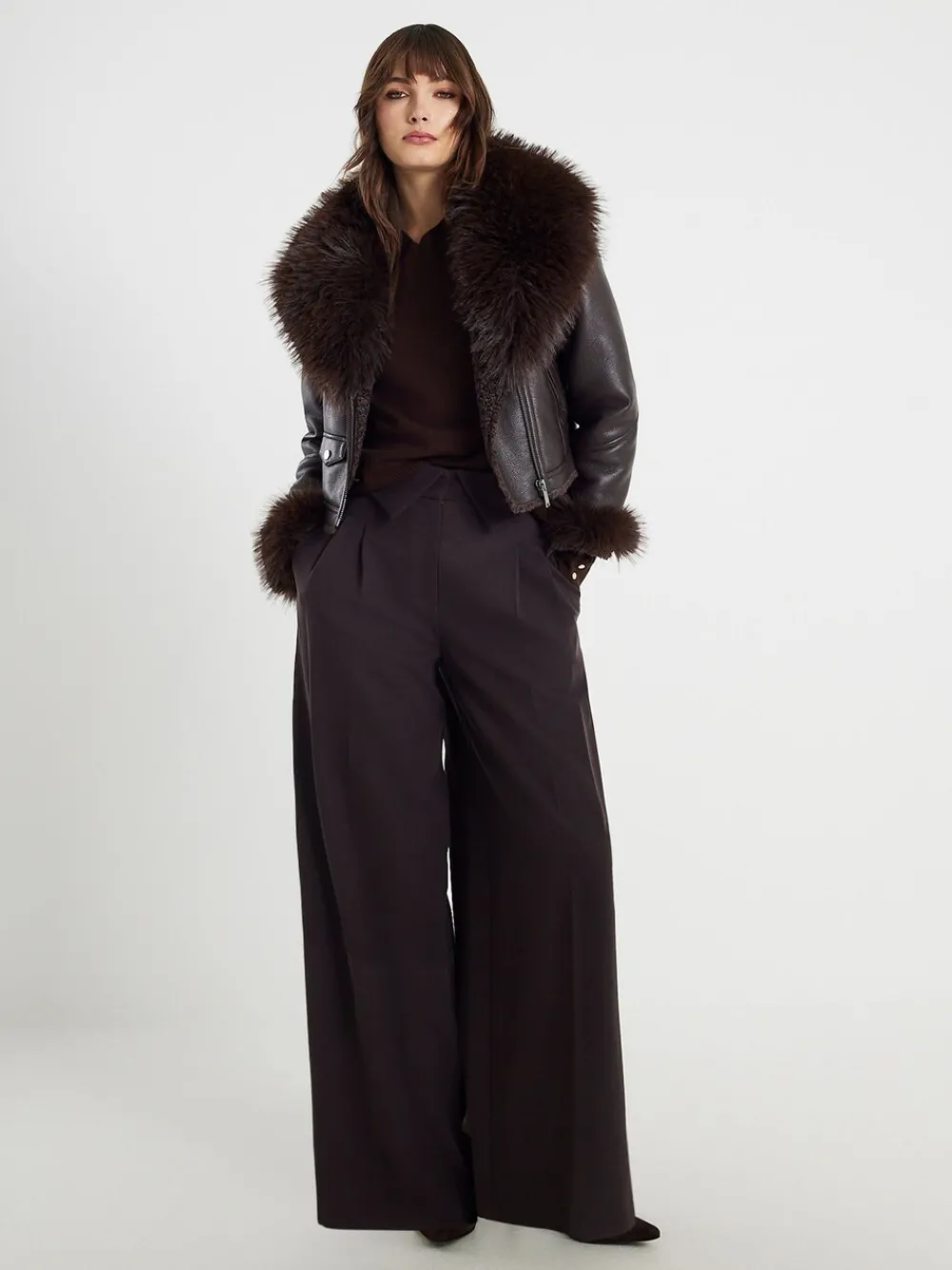 Faux Fur Collar Cropped Biker Jacket*River Island Hot