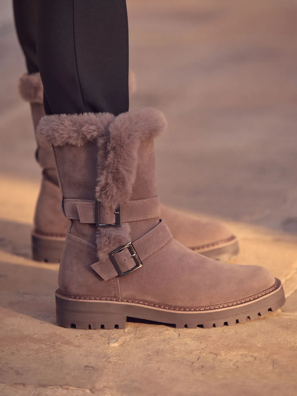 – Faux Fur Double Buckle Ankle Boots*Next Best